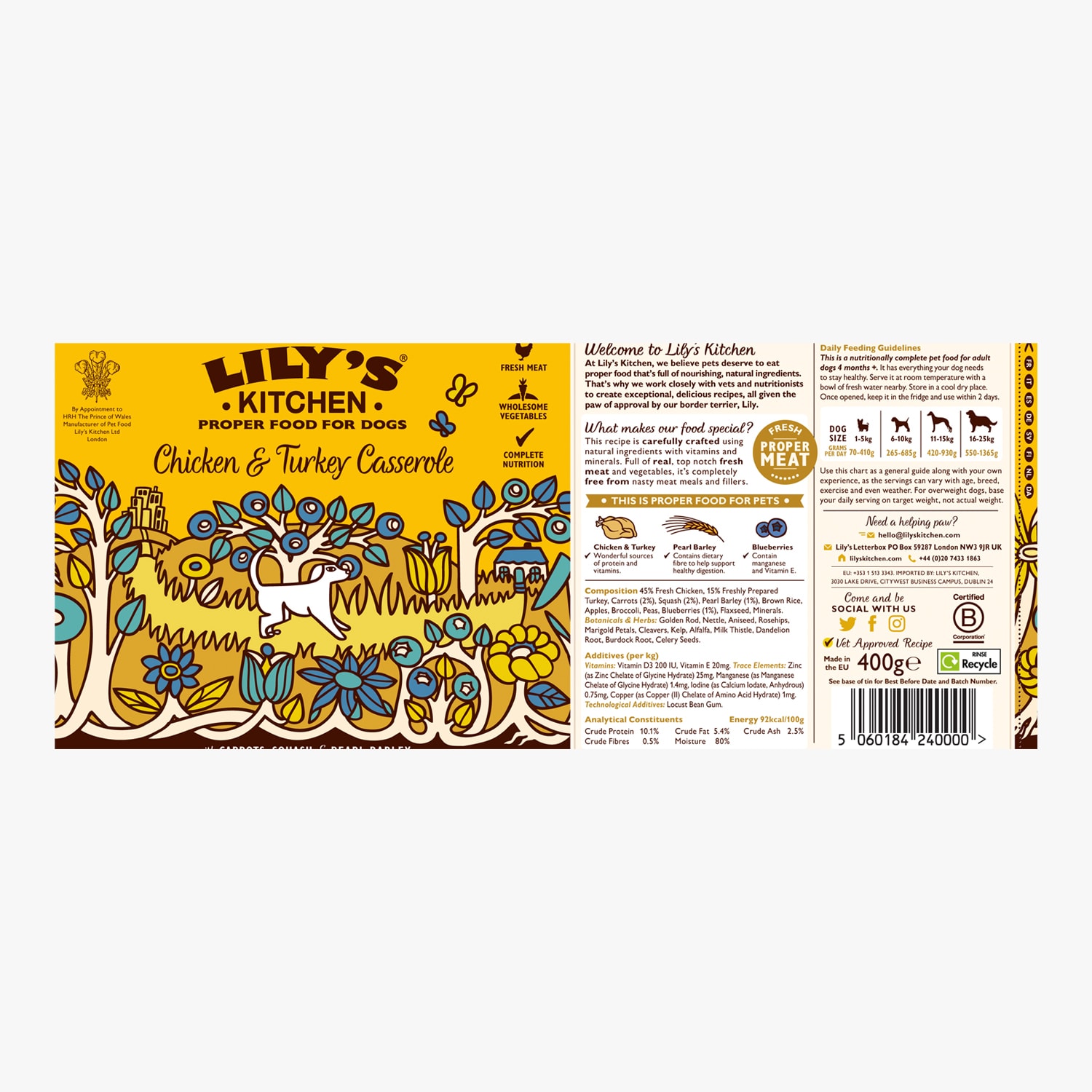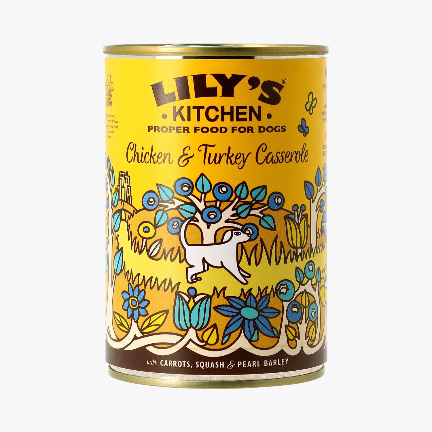 Pâtée pour chien au poulet, à la dinde, aux carottes, à la courge, à l’orge perlé et aux myrtilles
