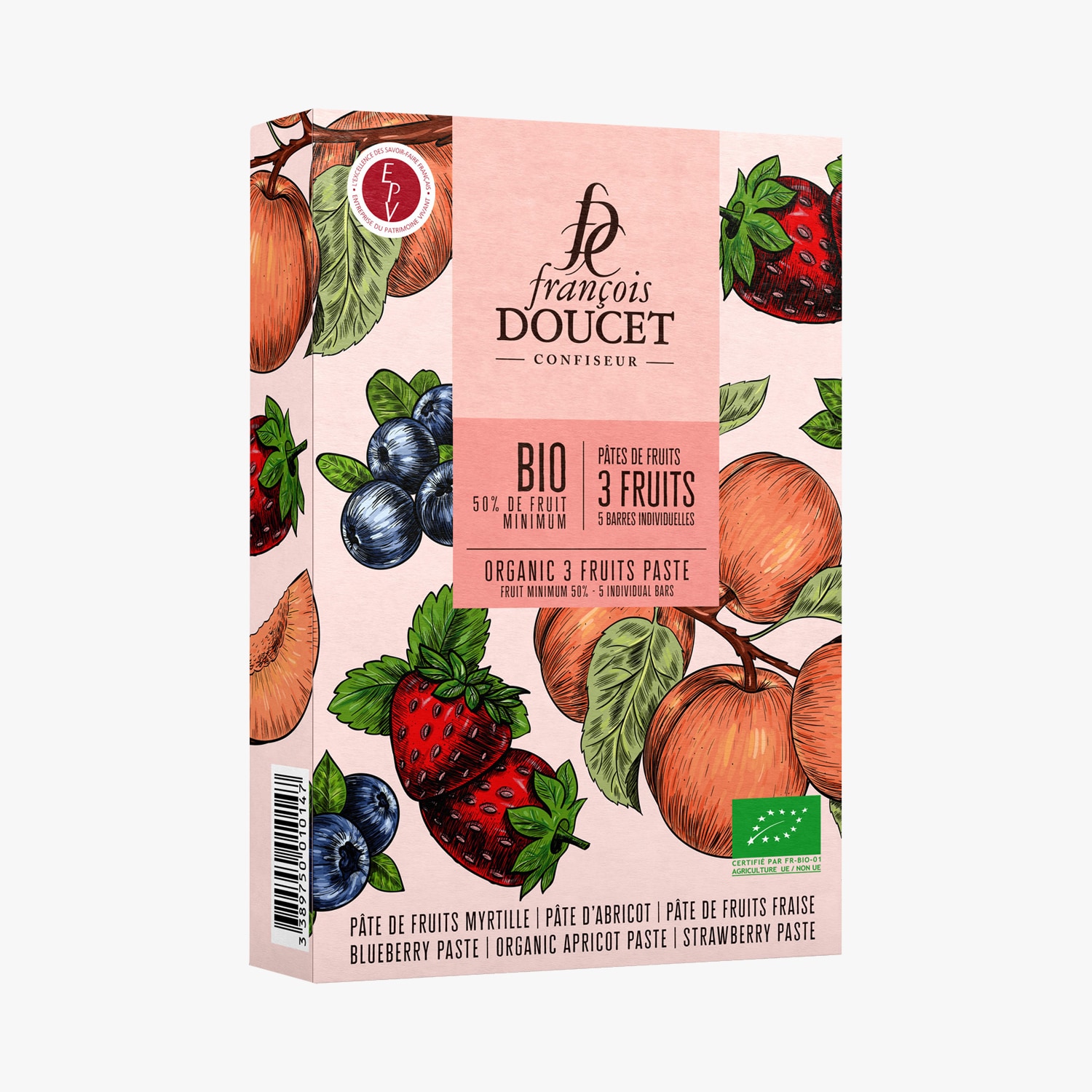 Pâtes de fruits 3 fruits BIO - 5 barres individuelles