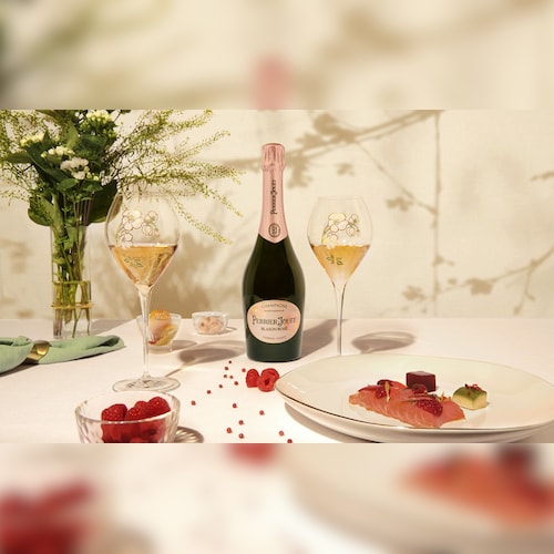 Perrier-Jouët Blason Rosé fait figure d’exception parmi les champagnes Perrier-Jouët. Cette cuvée gourmet dévoile les nuances florales du Chardonnay audacieusement enrichies par le caractère fruité du Pinot Noir. D’une belle ampleur et rondeur en bouche, ce vin reste néanmoins fidèle au style délicat de la Maison.