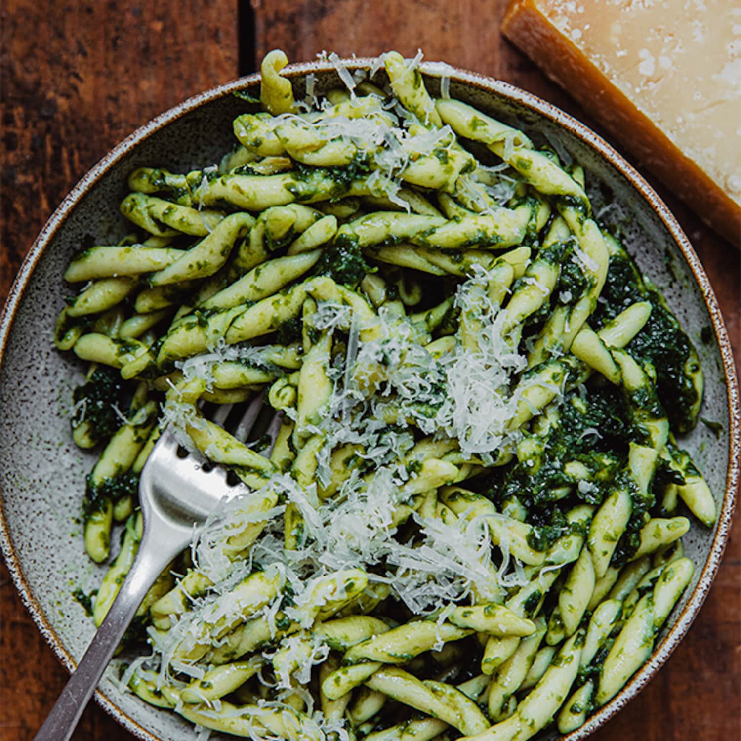 <span class="content">Ajoutez de l’huile d’olive pour ajuster la consistance si besoin et servez avec les pâtes de votre choix.</span>