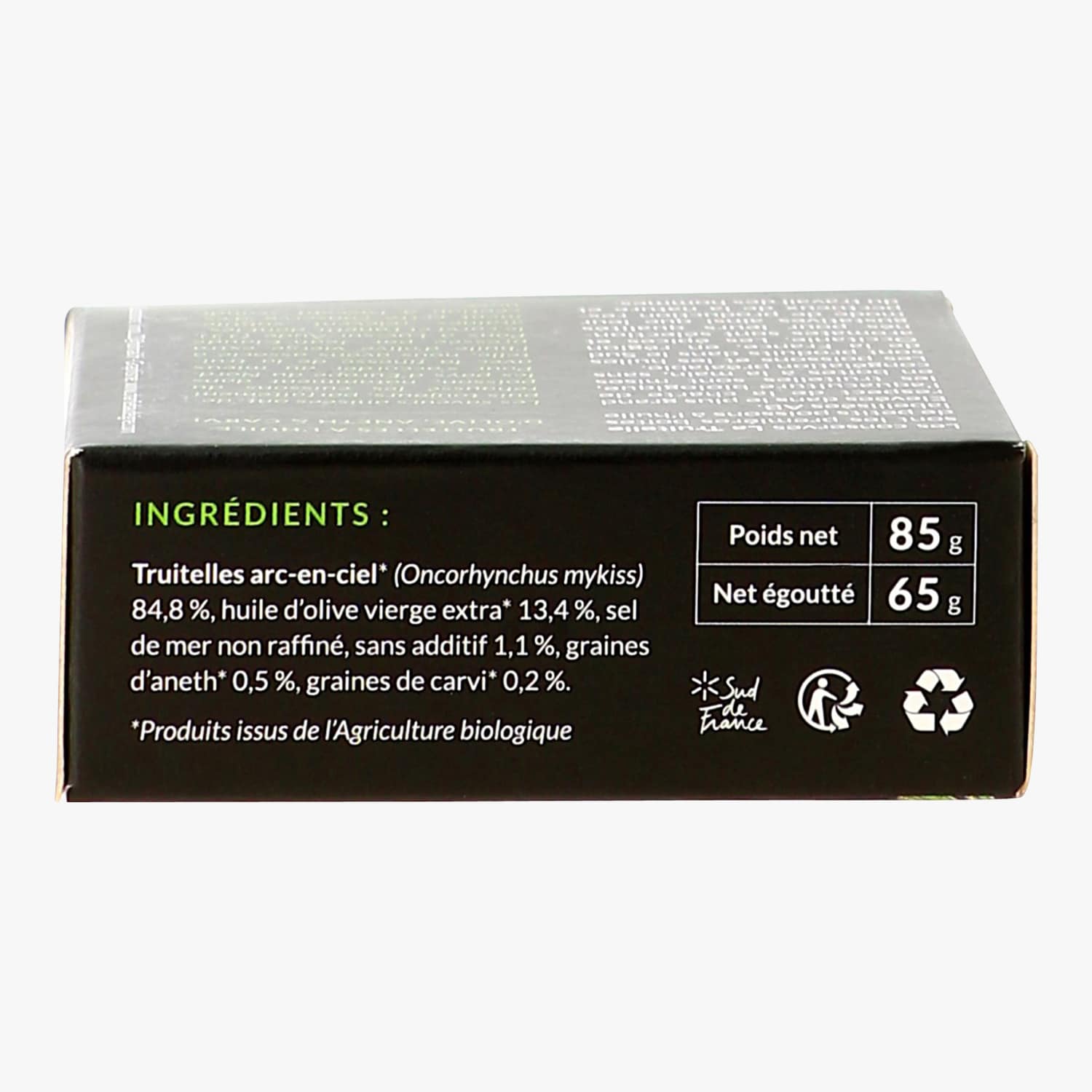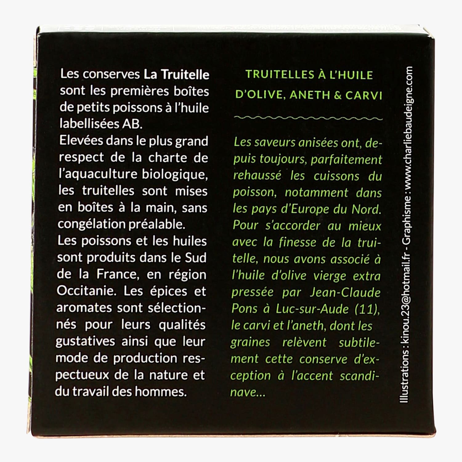 Petites truites de montagne à l’huile d’olive, aneth et carvi bio La Truitelle