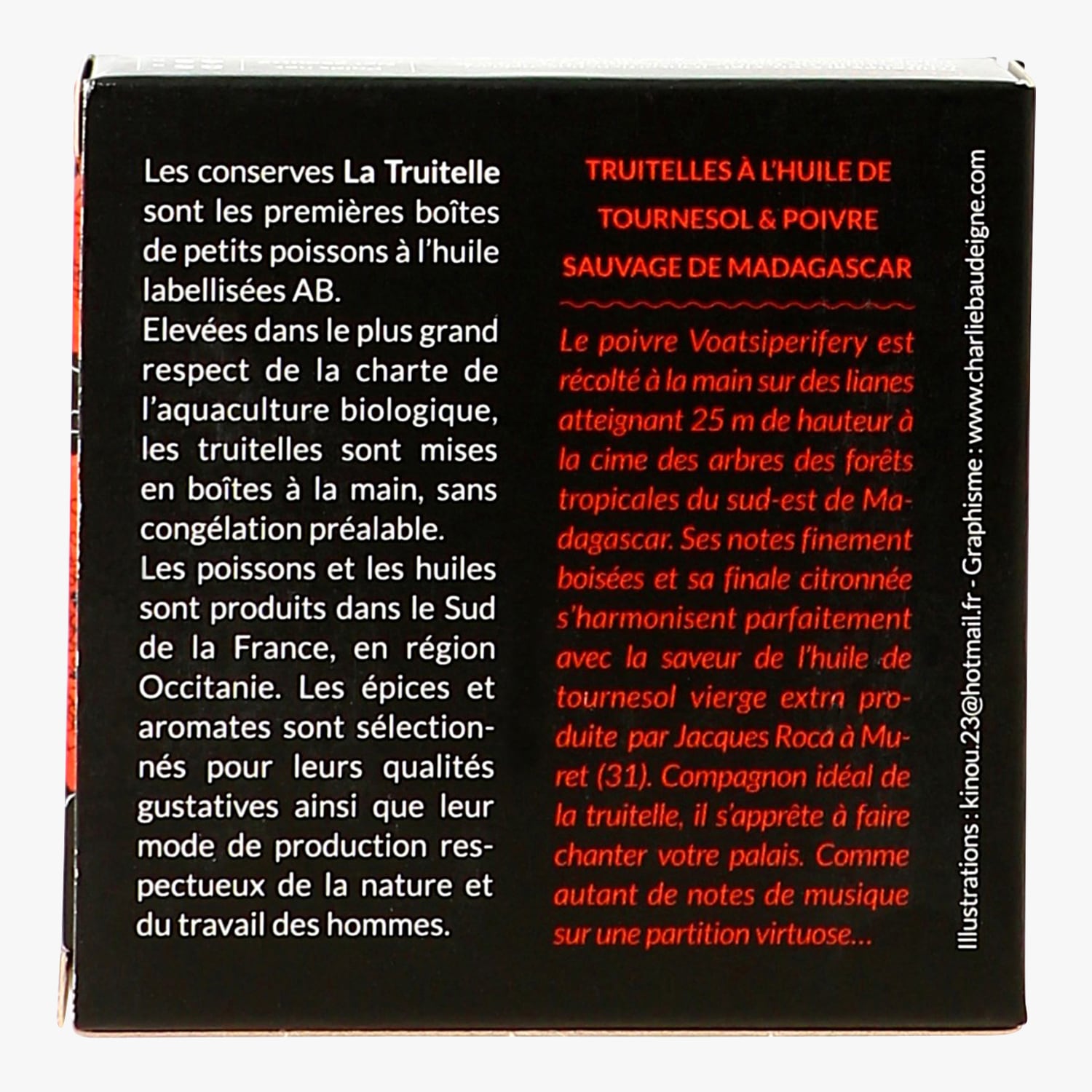 Petites truites de montagne à l’huile de tournesol et poivre sauvage de Madagascar bio La Truitelle