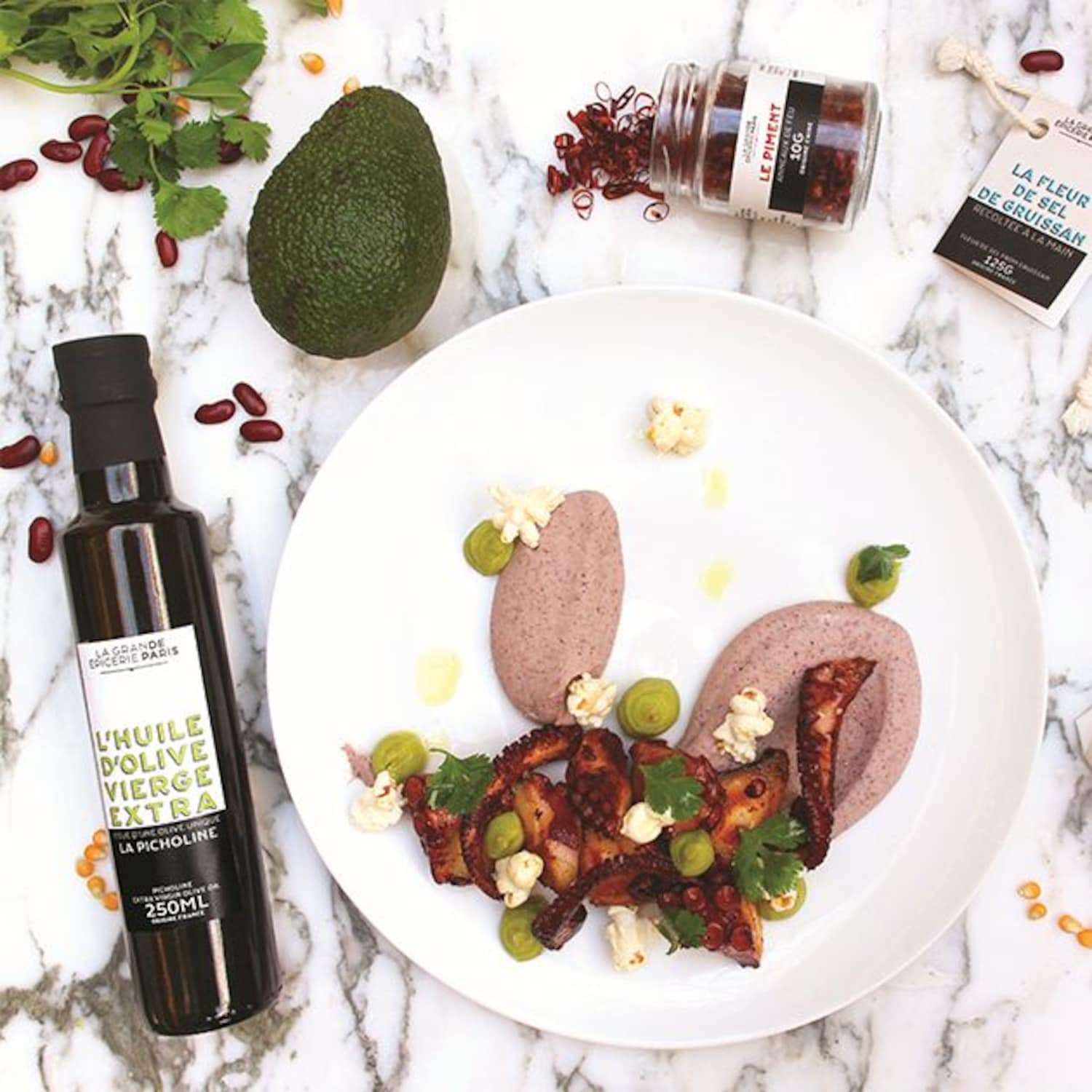 Le mot du chef : L’huile d’olive Picholine est monovariétale, c’est-à-dire issue d’une variété d’olive unique et non d’un mélange. La Picholine a pour caractéristique d’être à la fois légèrement amère et ardente.