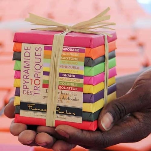 Dans sa manufacture de Roanne, François Pralus produit une vingtaine de crus pure origine, une palette de saveurs révélées par le type de fèves et le terroir dont elles sont issues. La pyramide des Tropiques, un des produits phares de la maison, permet de découvrir les subtilités du chocolat, d’en goûter les nuances d’une origine à une autre. François Pralus est également le créateur de la Barres infernale, un lingot de chocolat fourré à partager.