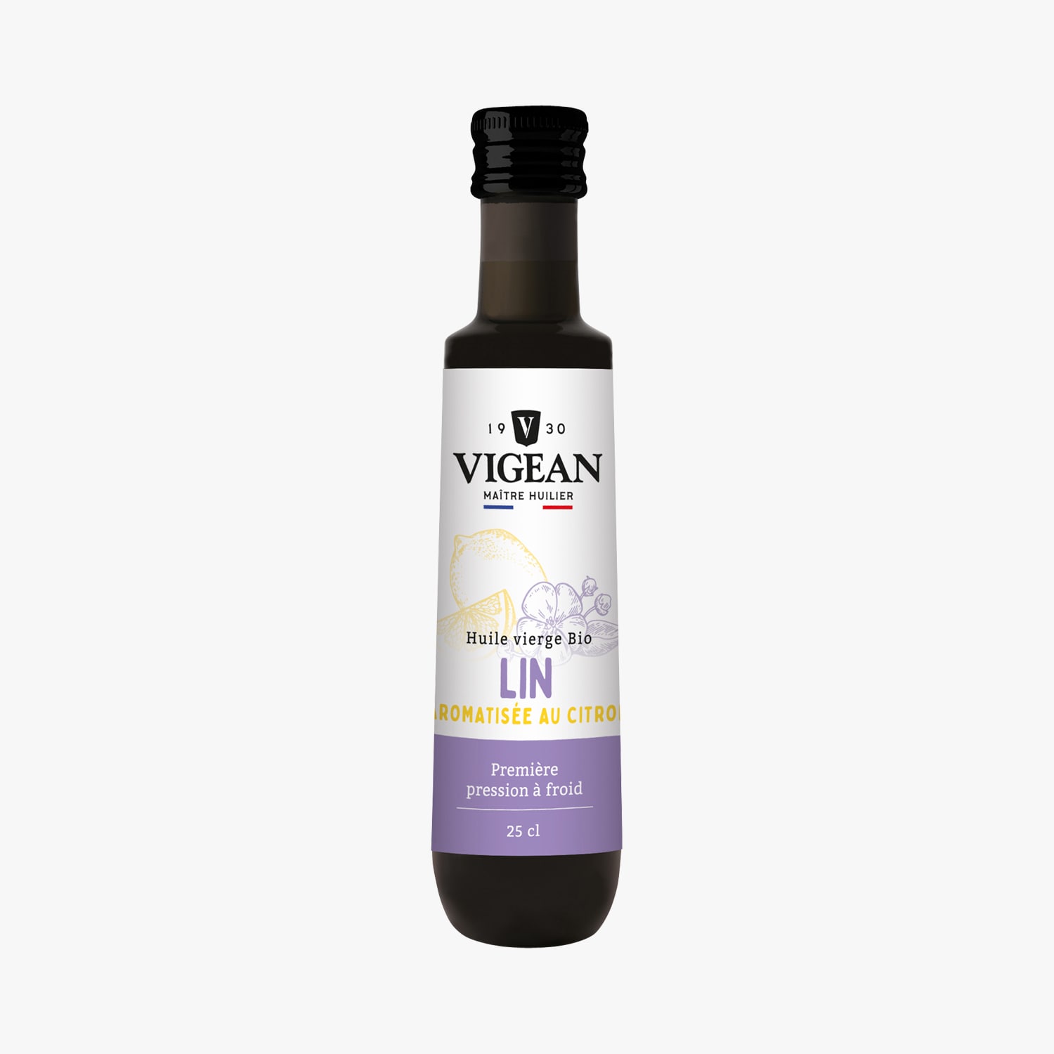 Préparation à base d'huile vierge bio lin aromatisée au citron Vigean