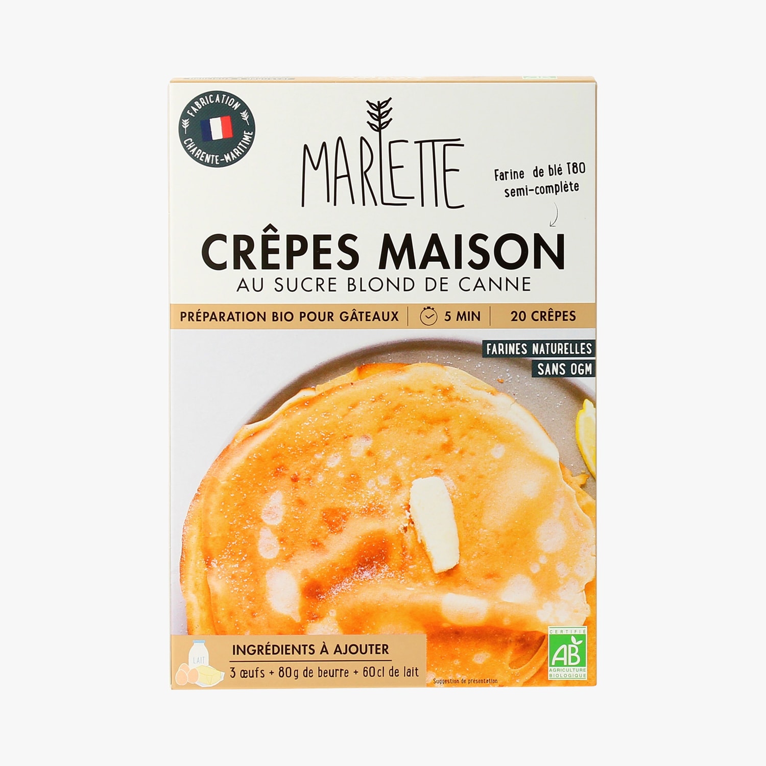 Préparation bio pour crêpes maison au sucre blond de canne Marlette