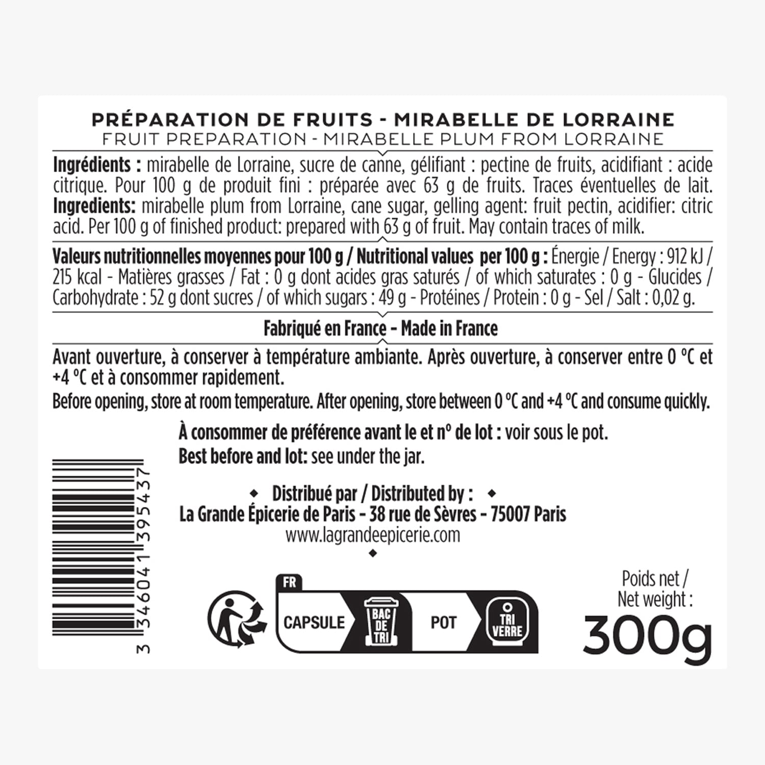 Préparation de fruits Mirabelle de Lorraine La Grande Épicerie de Paris