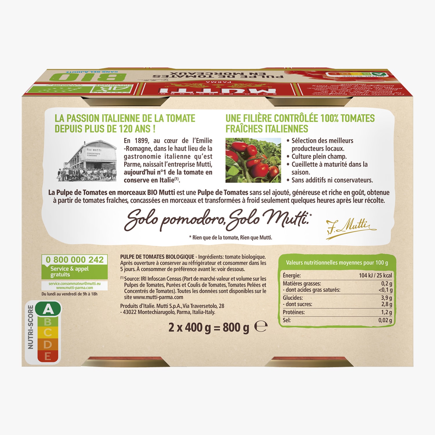 Pulpe de tomates en morceaux bio sans sel ajouté