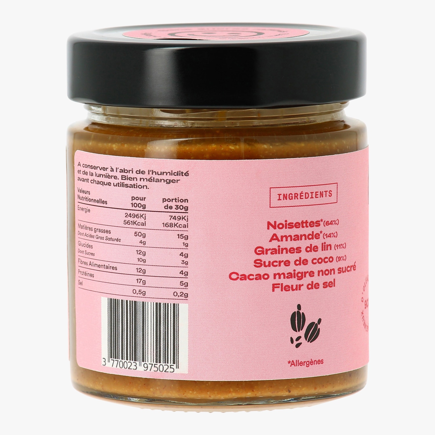 Purée d’oléagineux noisette, amande, graines de lin, cacao