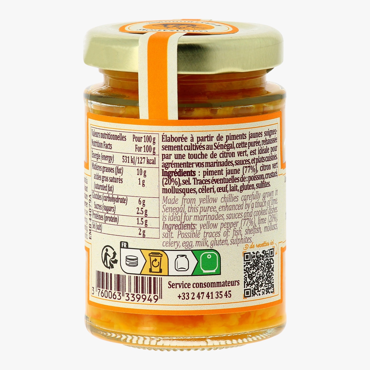 Purée de piment jaune au citron vert Terre Exotique