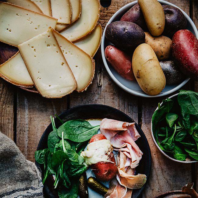 Retrouvez-vous autour d’une chaleureuse tablée pour profiter d’une tradition hivernale qui rassemble petits et grands. L’incontournable fromage à raclette de notre Sélection Engagée décline ses saveurs des plus classiques aux plus raffinées. Fines tranches natures au goût authentique, fumées ou au poivre pour retrouver davantage de caractère et à l’ail des ours pour une dégustation parfumée, nos experts fromagers se sont attachés à vous proposer une déclinaison riche des saveurs de la traditionnelle raclette. S’accorder le plaisir d’une raclette sans agrémenter son repas de quelques fins produits charcutiers semble impensable. Nos équipes ont donc sublimé notre Sélection Engagée de viande des grisons, d’un jambon de Bayonne IGP ainsi que d’un jambon cuit Prince de Paris. L’ensemble se déguste accompagné des pommes de terre de la Maison Bayard dont les multiples variétés se bousculent dans nos étals. C’est en Picardie que cette famille d’agriculteurs passionnés cultive avec soin des pommes de terre dont les saveurs sont aussi diversifiées que les couleurs !
