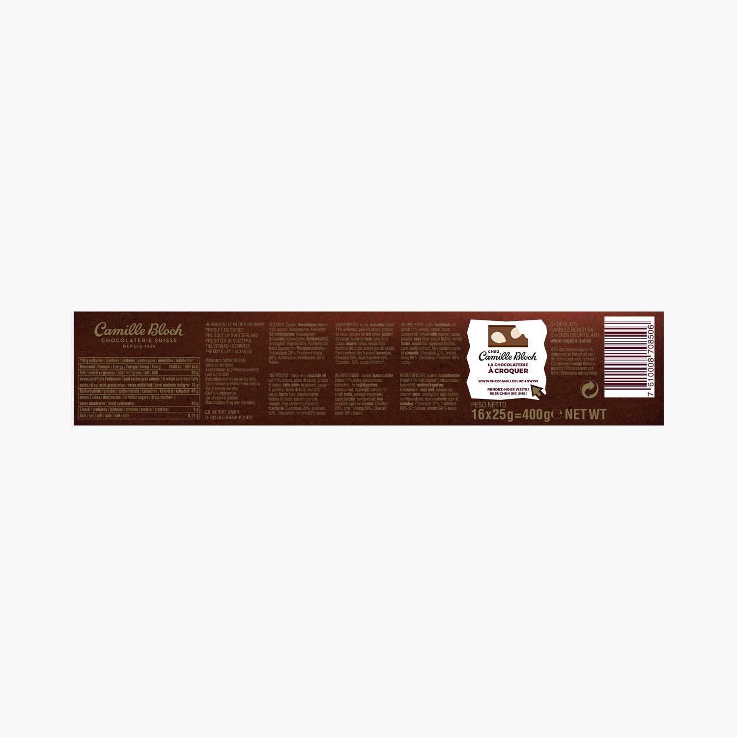 Confiserie au chocolat noir fourré praliné et noisettes entières