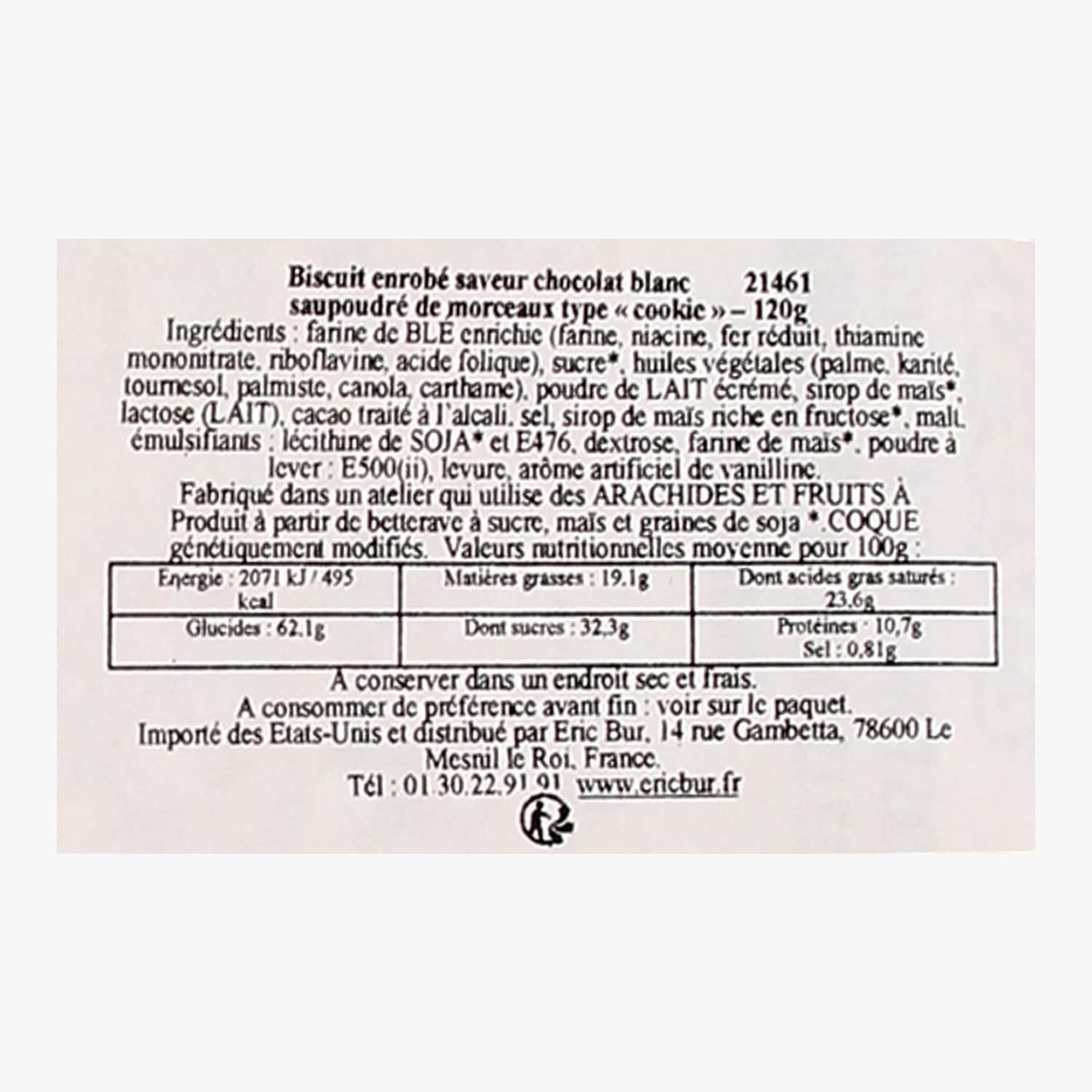 Biscuit enrobé saveur chocolat au lait saupoudré de morceaux type « cookie »