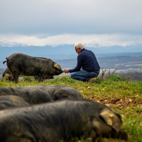 Vincent : son caractère en premier lieu, docile, calme et très attachant, et le produit très qualitatif qui en découle. Je n’ai jamais connu de telle race, qu’il s’agisse de porcs ou d’autres animaux. Elever des porcs noirs de Bigorre, c’est une véritable philosophie : l’élevage en extérieur, les voir évoluer pendant de nombreux mois.
