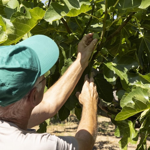 Jean-Louis : Chaque agriculteur a sa propre façon de tailler ses figuiers. Notre savoir-faire consiste à les tailler en nid d’oiseau : cela implique de tenir les arbres courts pour faciliter la récolte, mais aussi de garder la juste proportion de branches. Si nous en gardons trop, cela peut freiner la maturation de nos fruits. Si nous en coupons trop, nous risquons de trop exposer nos fruits, qui se cachent à l’ombre des feuilles, et ainsi d’obtenir une peau des fruits brûlée.
