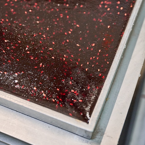 Le secret pour obtenir des pâtes de fruits d’exception réside dans la qualité des ingrédients. Pour commencer, nous utilisons des purées de fruits haut de gamme, préparées à partir de fruits français. Celles-ci sont congelées pour conserver leur fraîcheur et leurs saveurs toute l’année. Ce principe nous permet de produire une vingtaine de parfums différents et de n’utiliser que très peu d’ingrédients dans nos recettes.