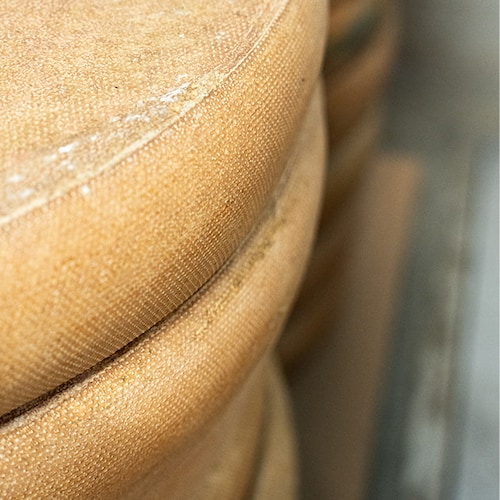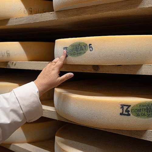 C’est là tout le savoir-faire de nos chefs de cave ! Nous écoutons nos fromages, nous les sonnons afin de détecter d’éventuels défauts. Les meules sont également retournées, mais tous ces processus sont le fait de l’œil de l’Homme. Il n’y a pas de règle, le chef de cave décide quand une meule est mature. Le seul prérequis obligatoire pour obtenir l’AOP est un affinage total de 4 mois.