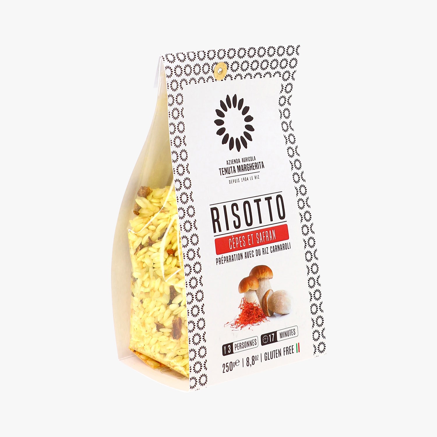 Préparation pour un Risotto cèpes et safran avec du riz Carnaroli