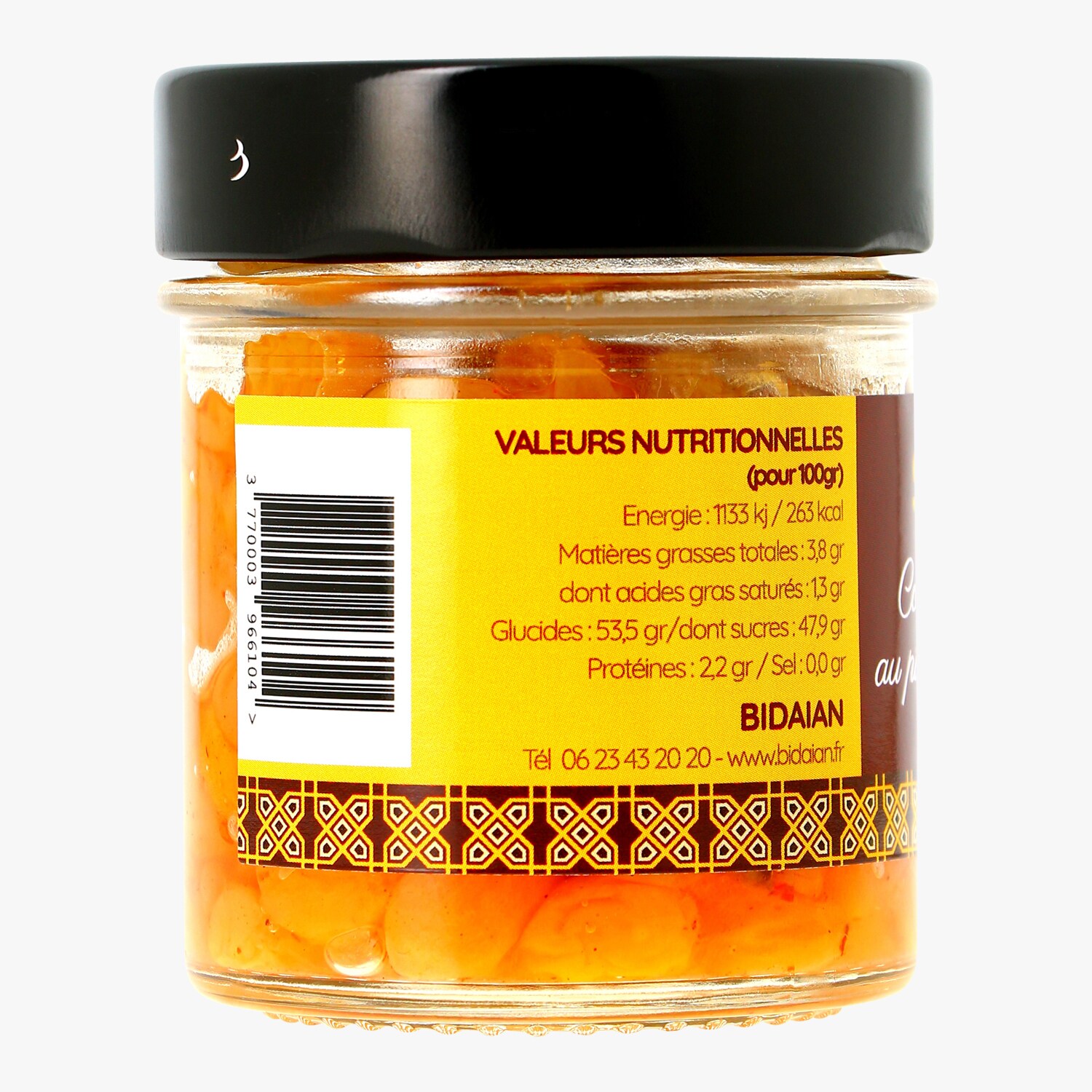 La gelée de piment d'Espelette est principalement obtenue avec la chair du piment d'Espelette cuite avec du sucre et de la pectine pour obtenir une gelée. Elle possède la texture d'une gelée de fruit, un goût à dominante sucrée. La note finale pimentée et fruitée qui caractérise si bien le piment...