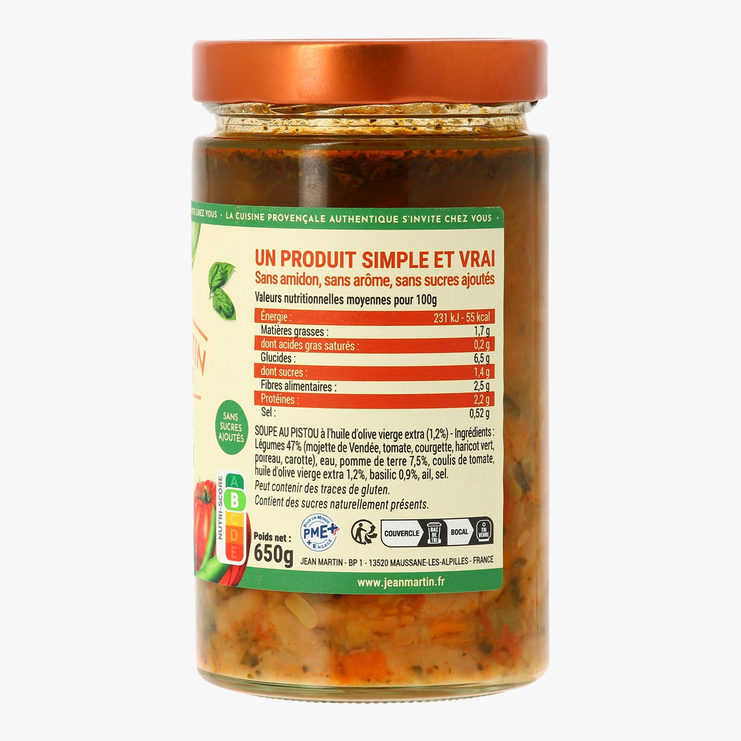 Soupe au pistou à l’huile d’olive vierge extra (1,2 %)