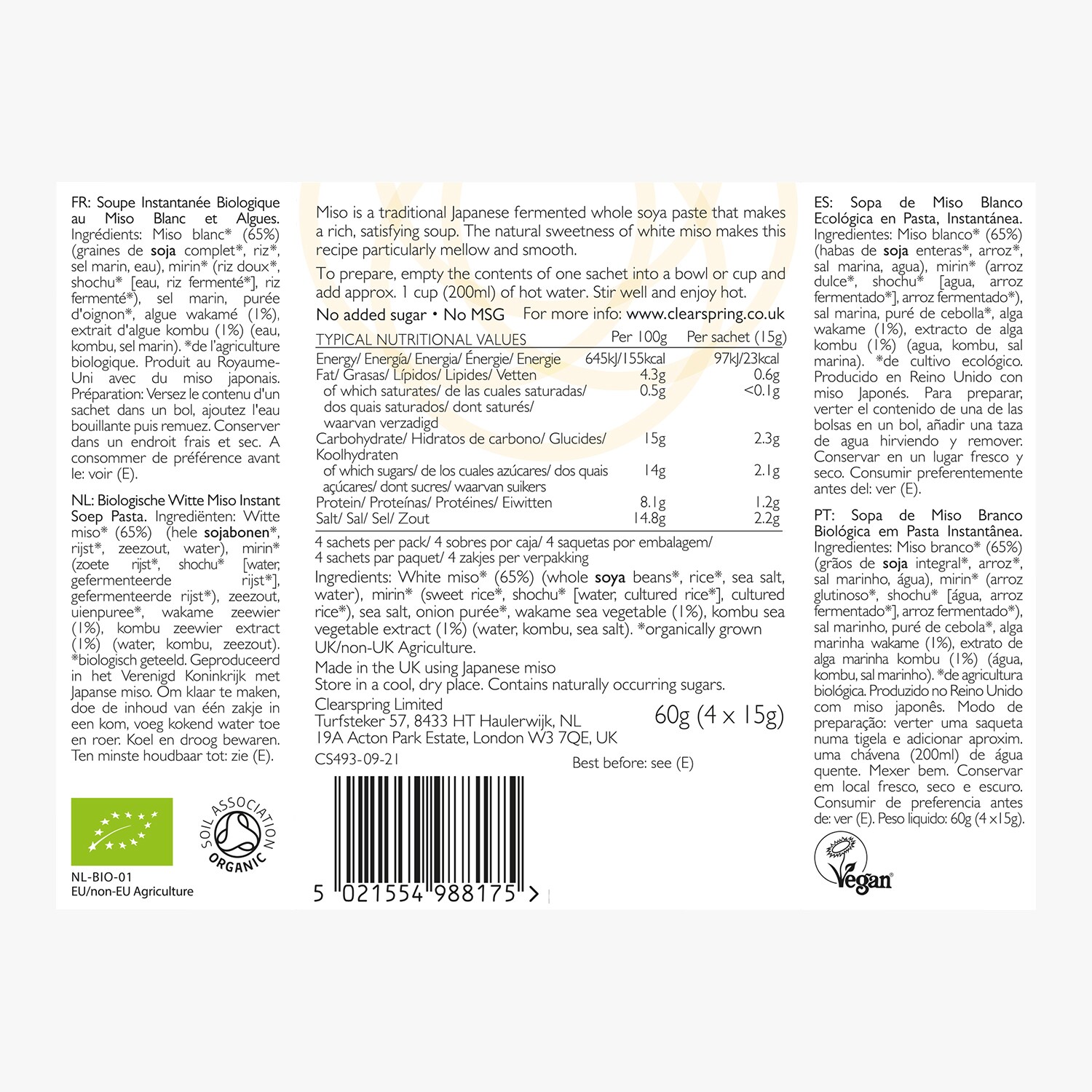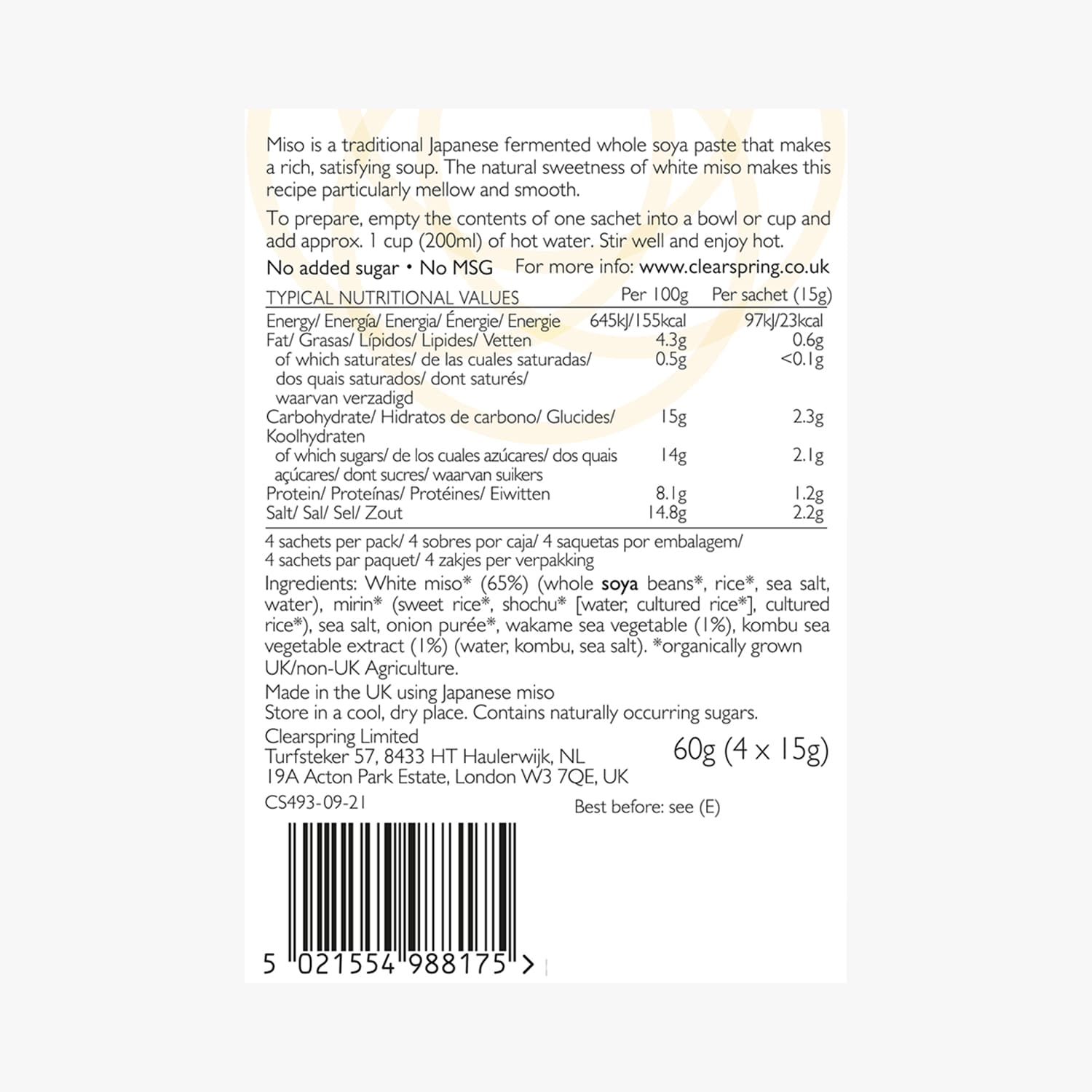 Soupe concentrée instantanée au miso blanc biologique Clearspring