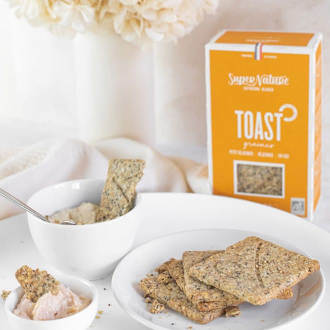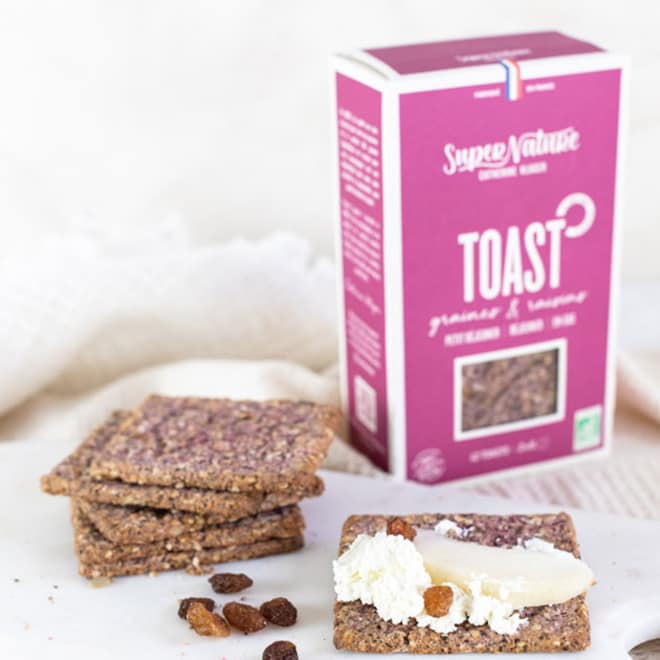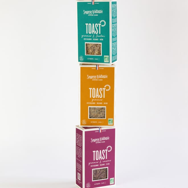 Ces Toasts nomades à tartiner & à dipper fabriqués en France à partir d'ingrédients bruts, certifiés BIO ont des propriétés nutritionnelles uniques (riches en Oméga 3, riches en fibres, faibles en sucre) une texture biscuitée novatrice et s'adaptent à tous les moments de la journée.