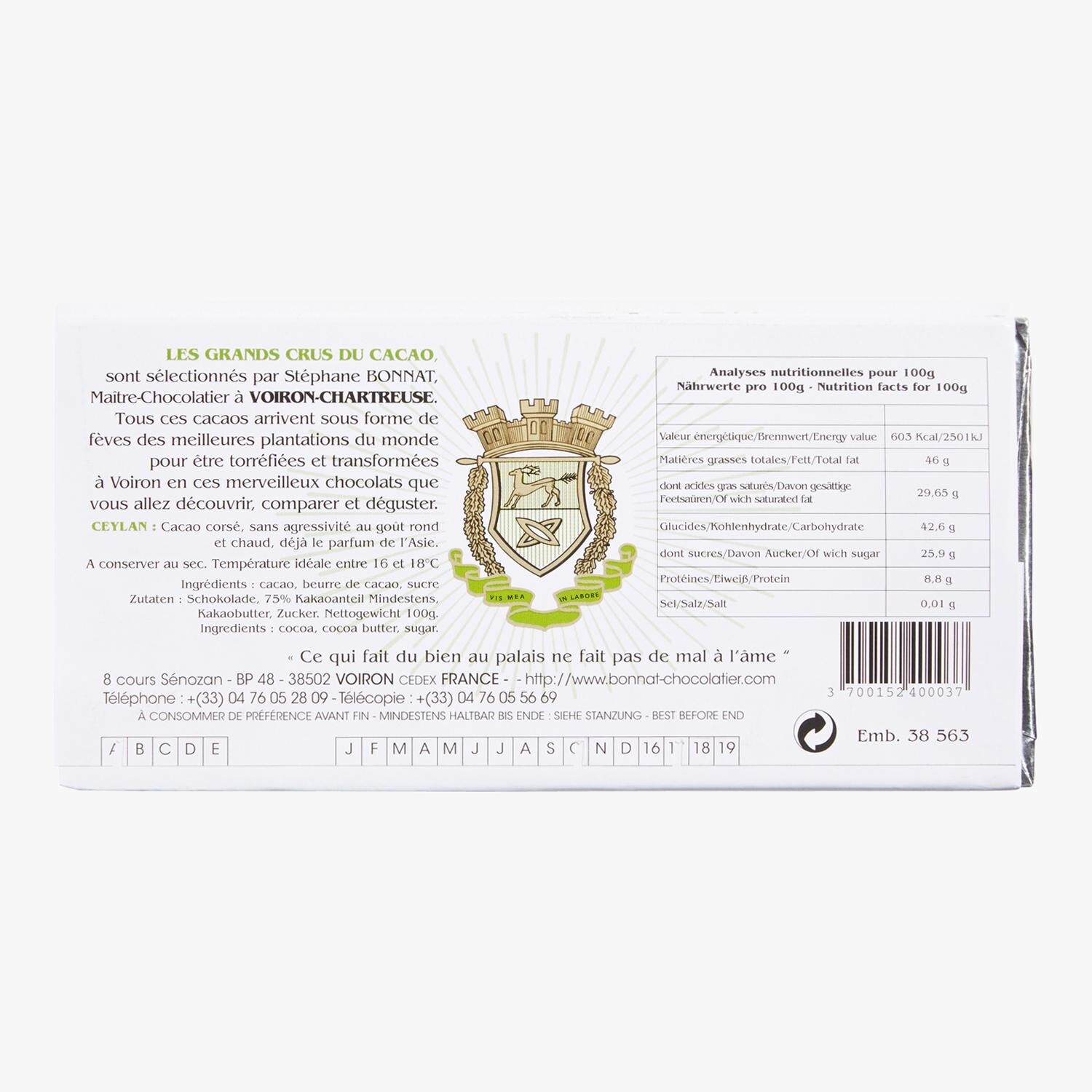 Tablette Ceylan Chocolat noir 75% de cacao Bonnat