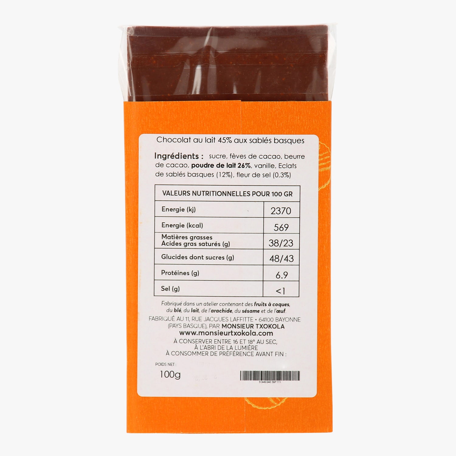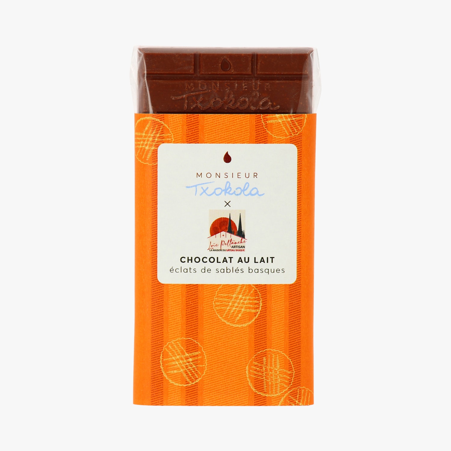 Tablette chocolat au lait 45 % et éclats de sablés basques