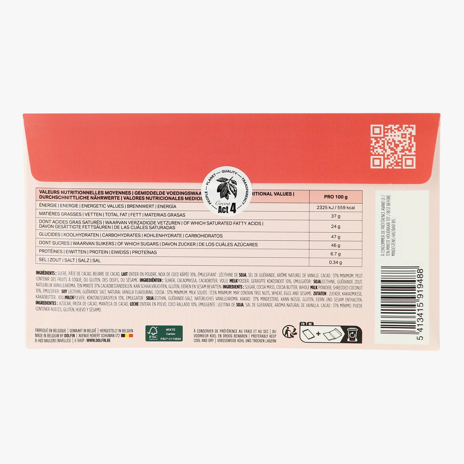 Tablette chocolat au lait et noix de coco