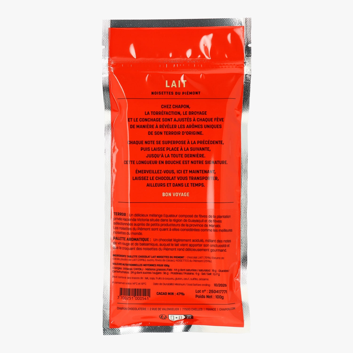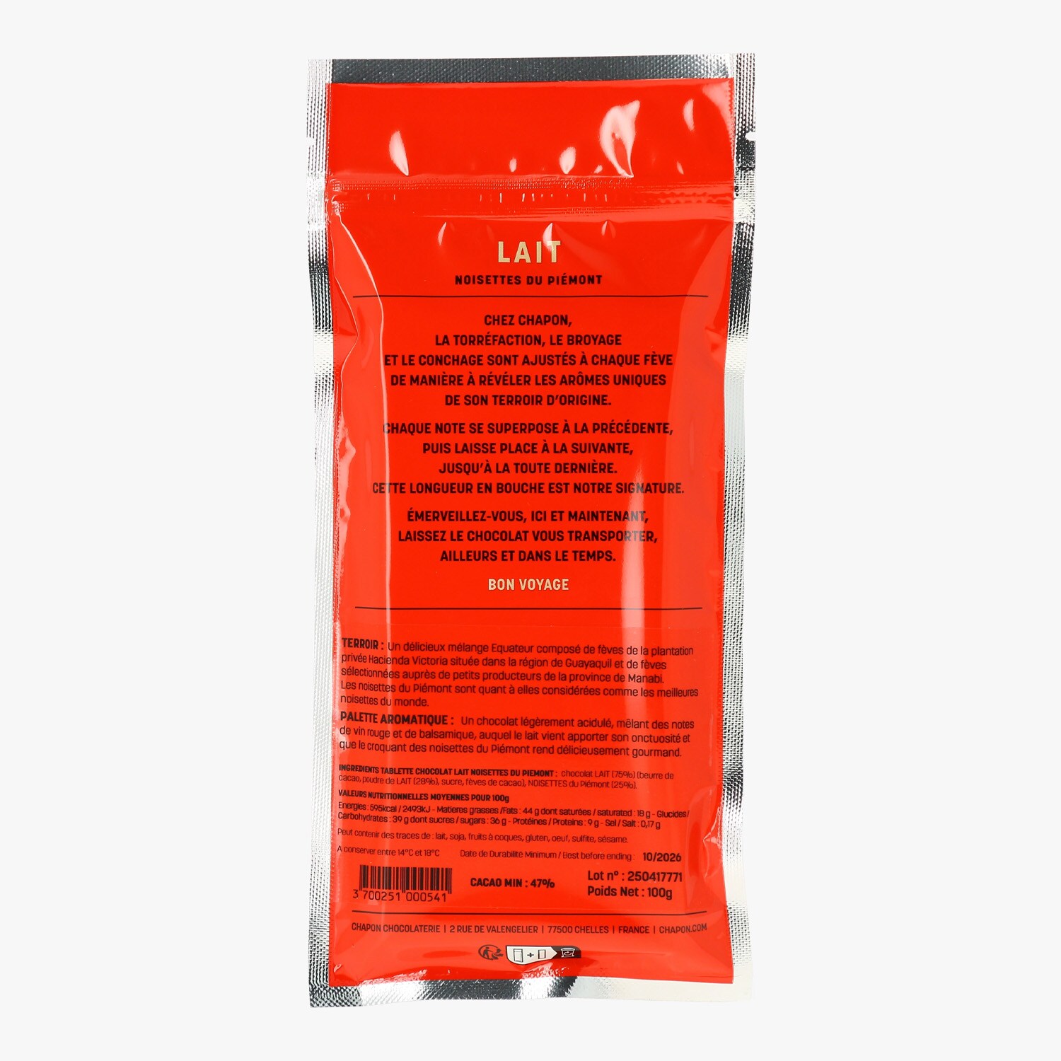 Tablette chocolat lait aux noisettes entières du Piémont Chapon