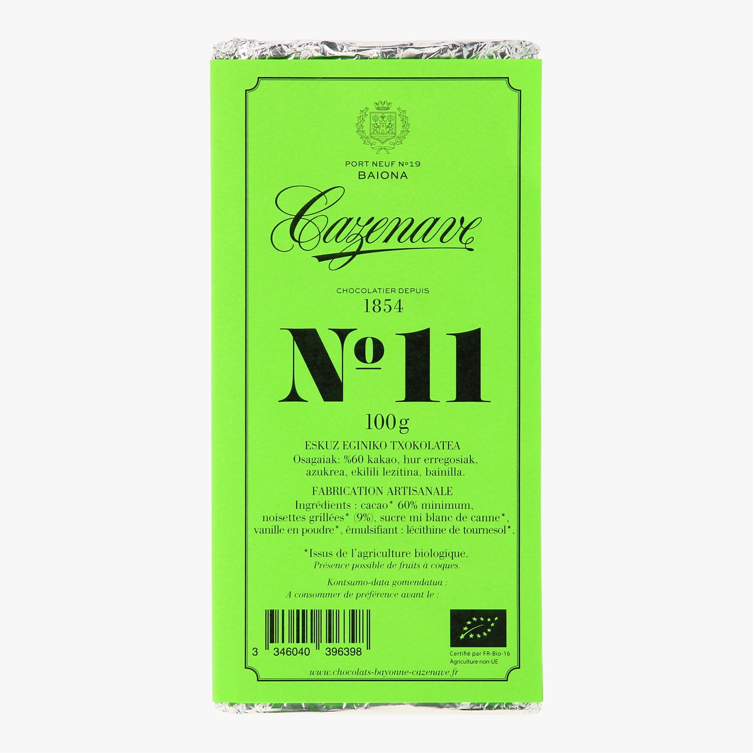 Tablette chocolat noir noisettes 60 %, N°11, biologique