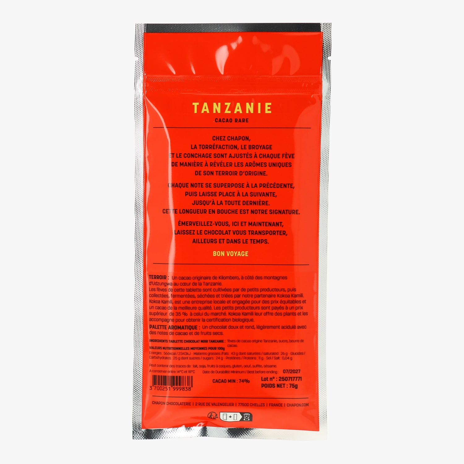 Tablette chocolat noir Tanzanie 74% - cacao rare Chapon
