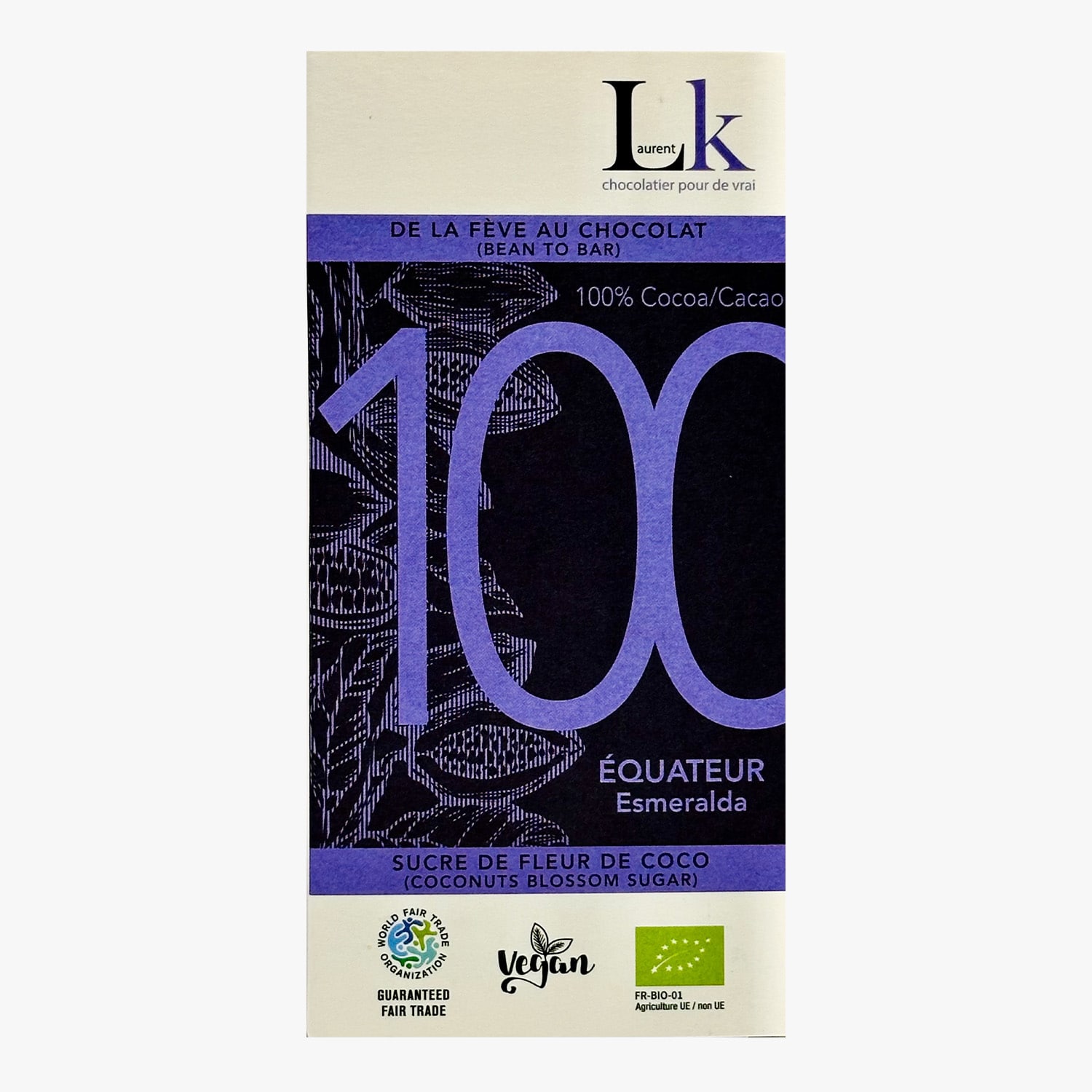 Tablette de chocolat 100 % cacao Équateur Laurent K