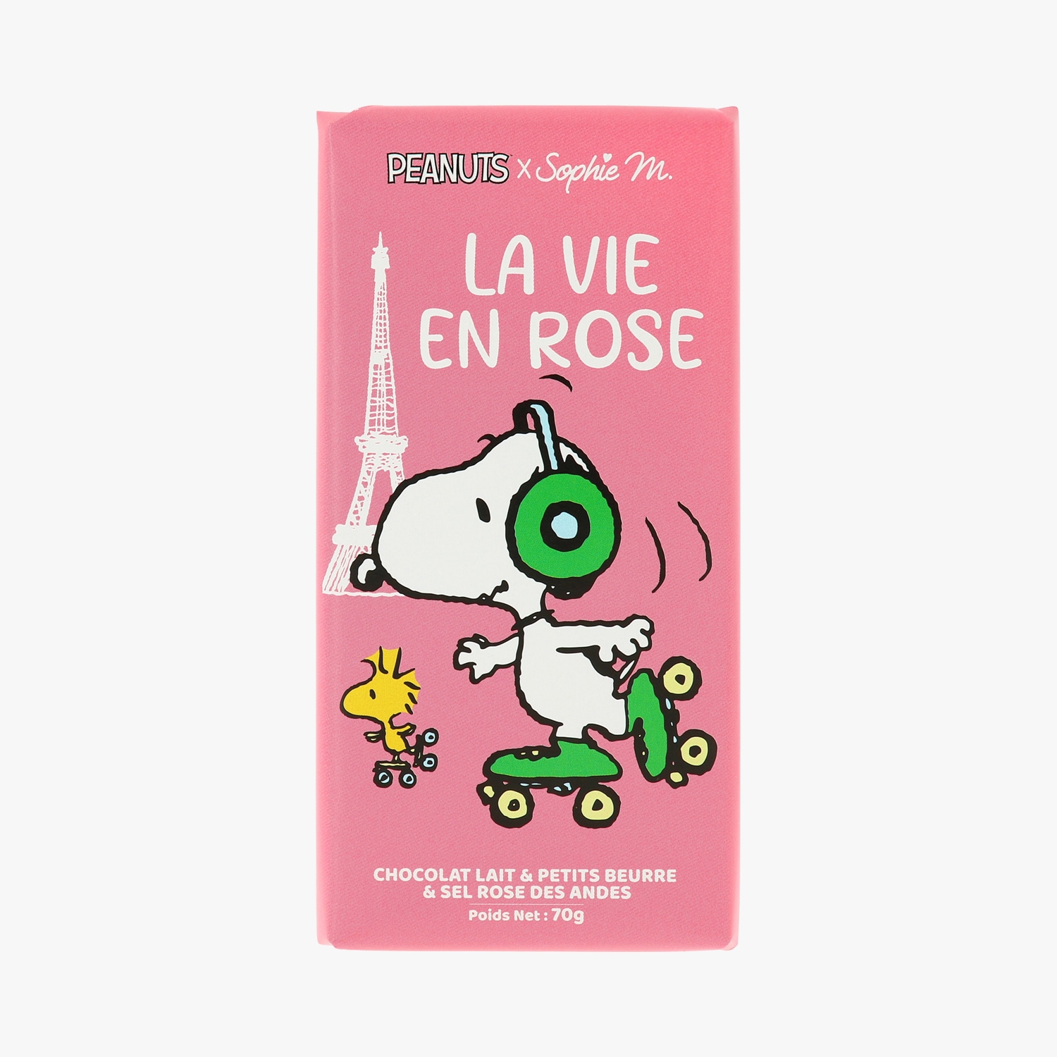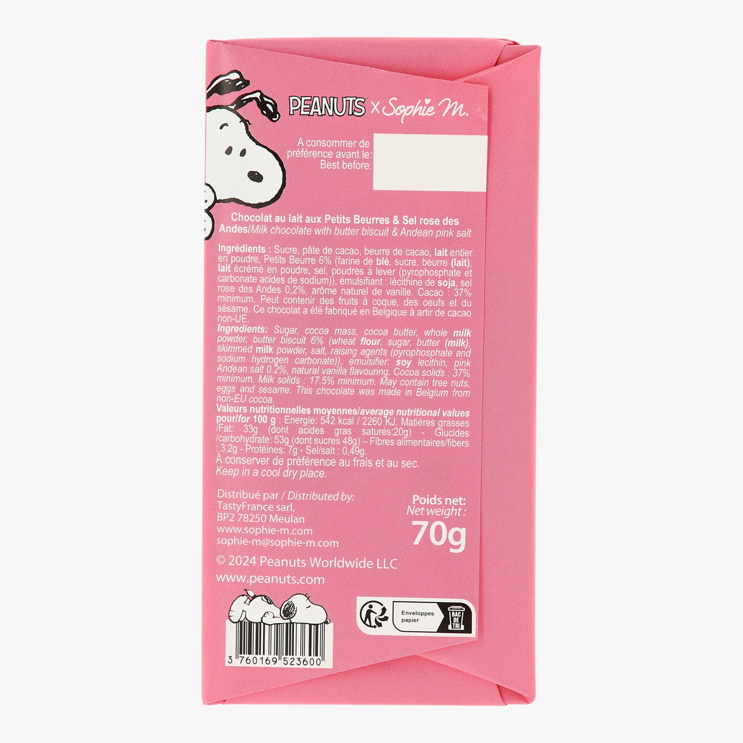Tablette de chocolat au lait, petits-beurre et sel rose des Andes