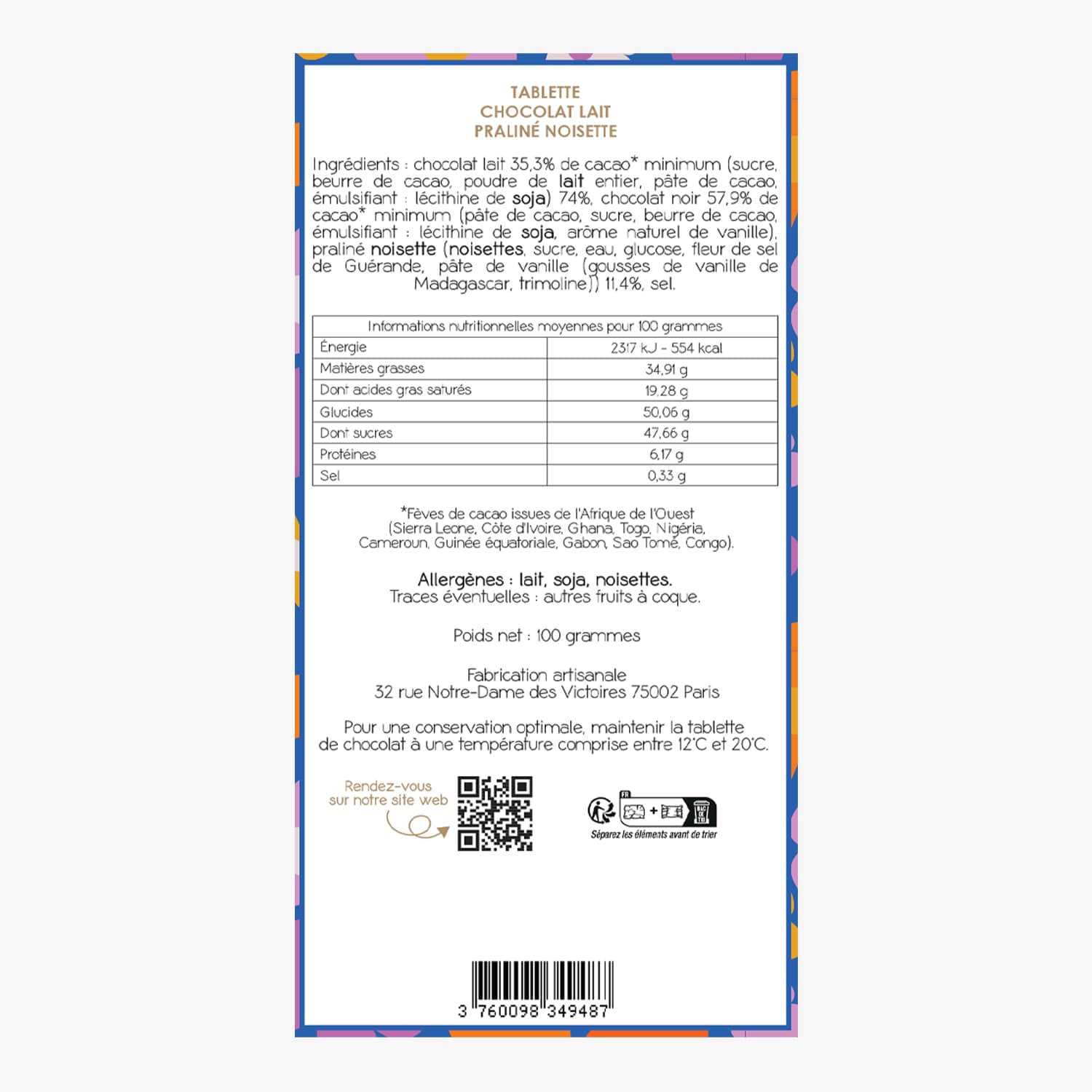 Tablette de chocolat au lait - Praliné noisettes françaises