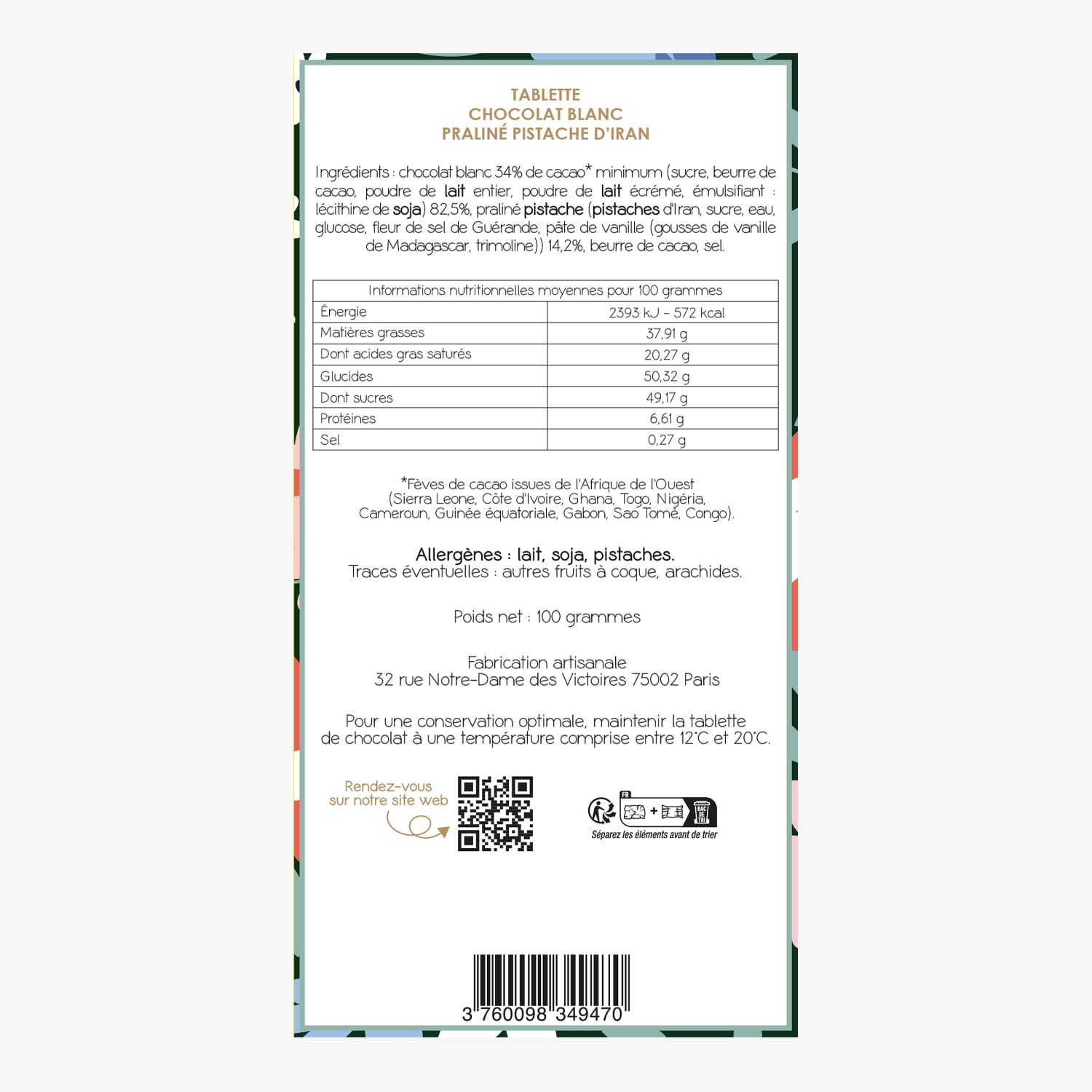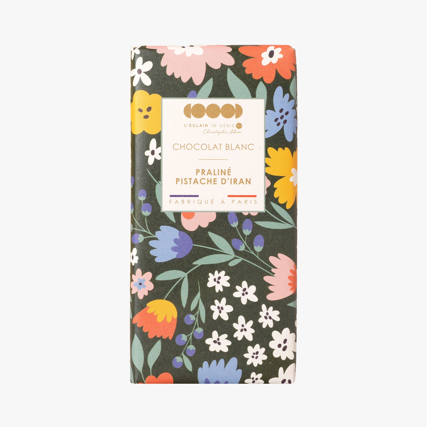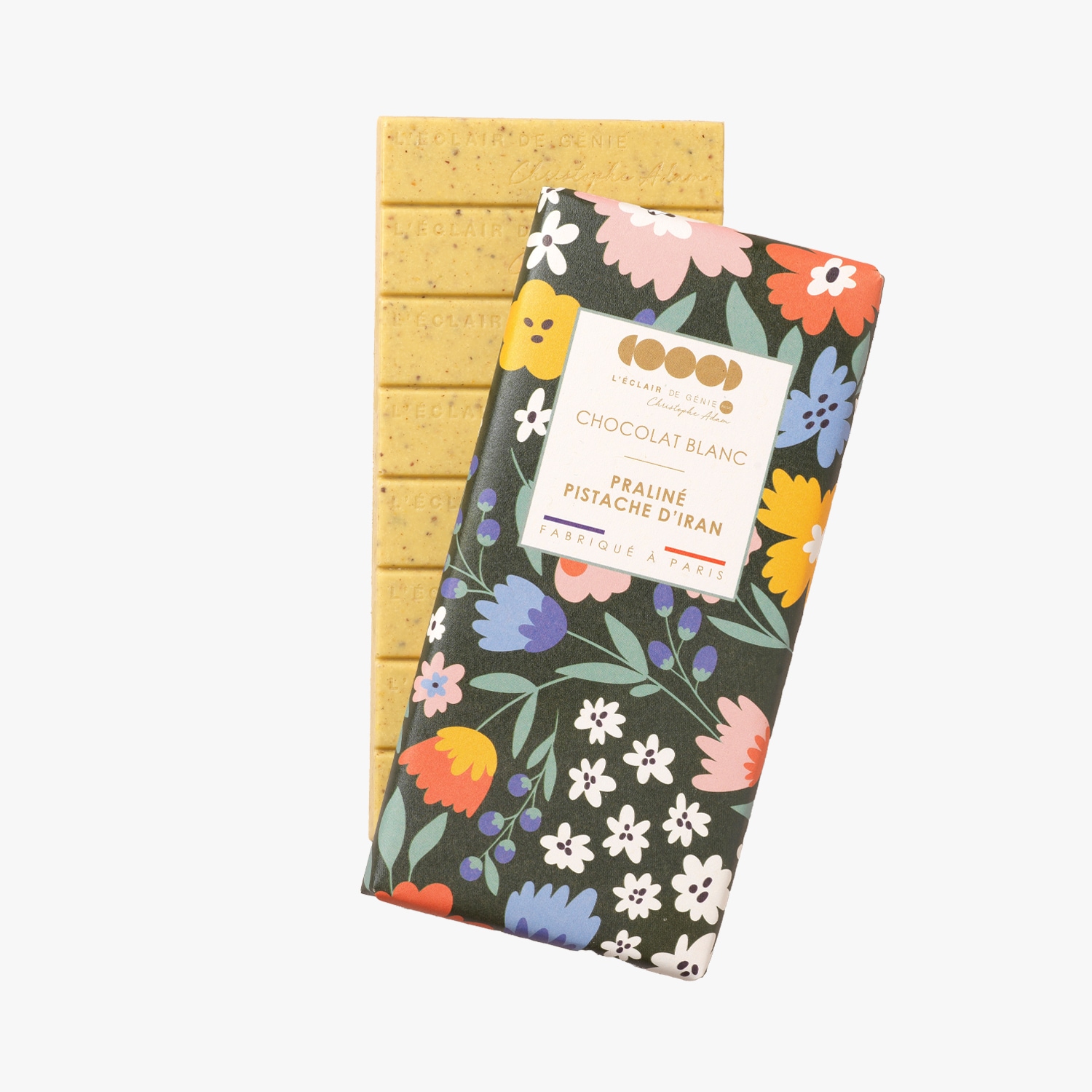 Tablette de chocolat blanc - Praliné de pistaches d'Iran L'Éclair de Génie