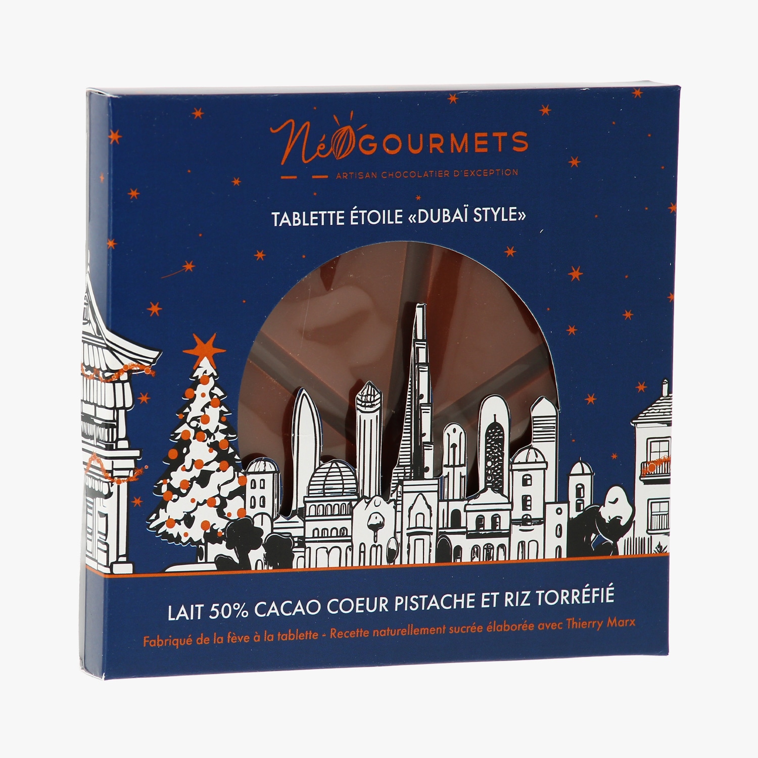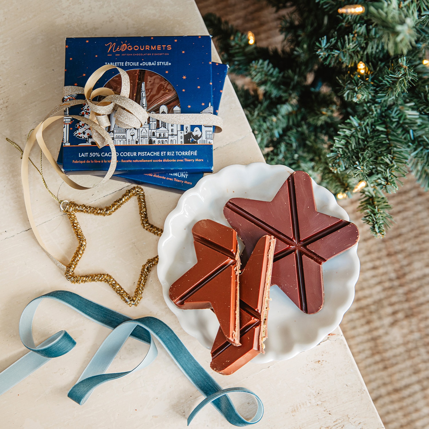 Tablette de chocolat lait 50% cacao cœur pistache et riz torréfié - Tablette Etoile "Dubaï Style"