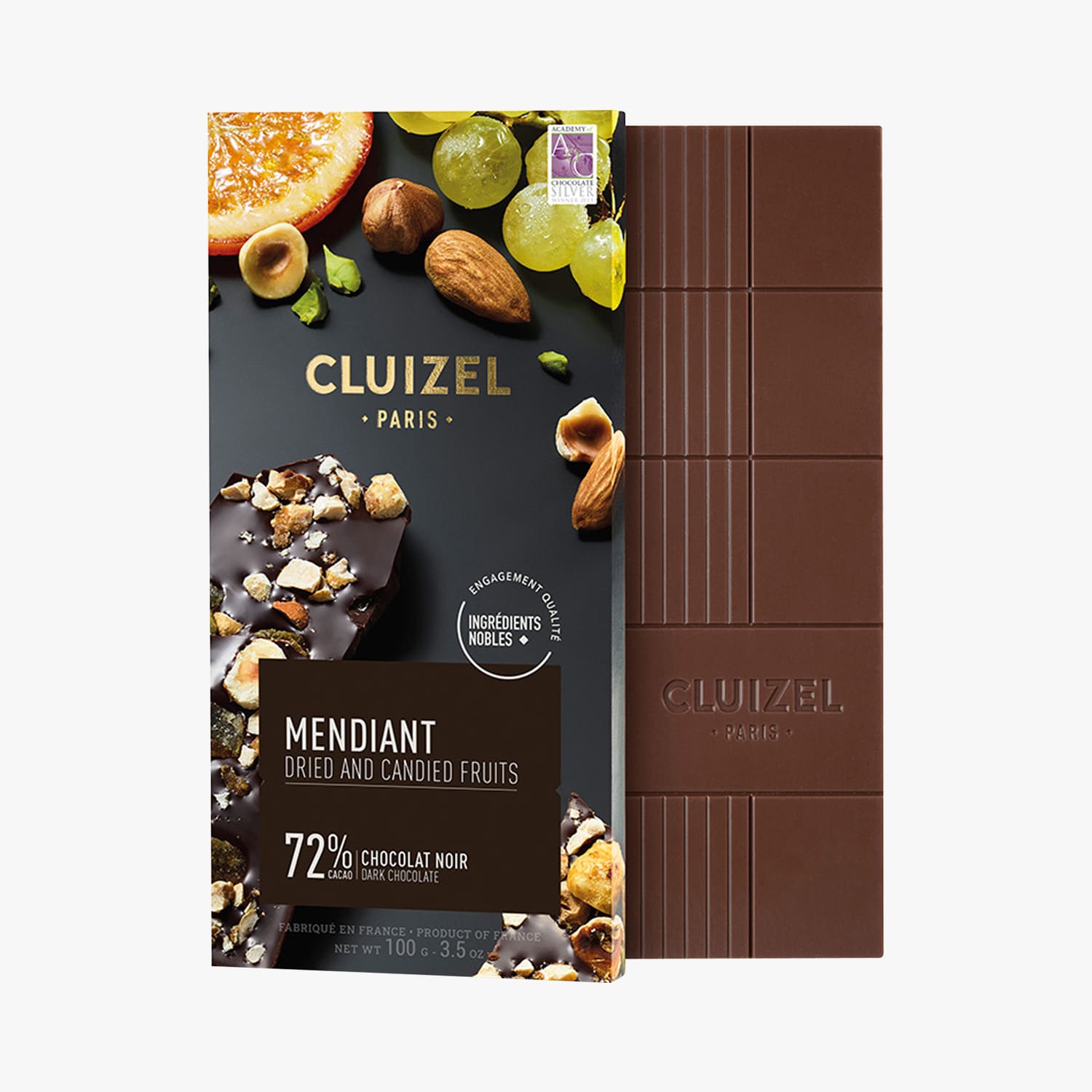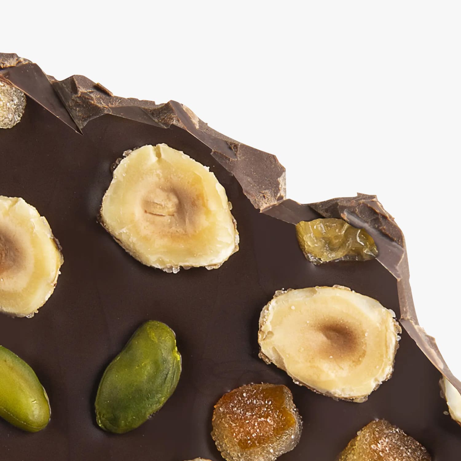 Chocolat noir 72% de cacao minimum aux fruits secs et confits