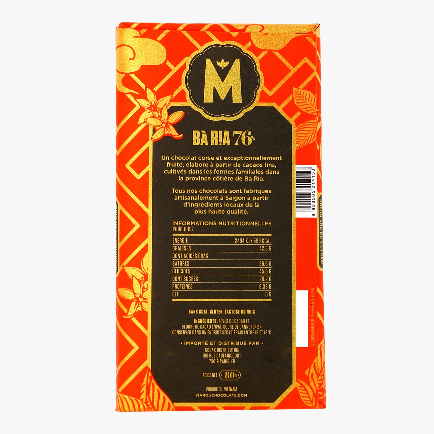 Tablette grand cru de chocolat noir du Vietnam, Ba Ria, 76% de cacao Marou