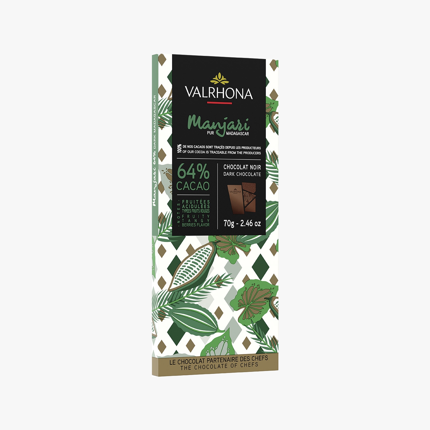 Tablette Manjari, chocolat noir (64% de cacao minimum, pur beurre de cacao) Valrhona