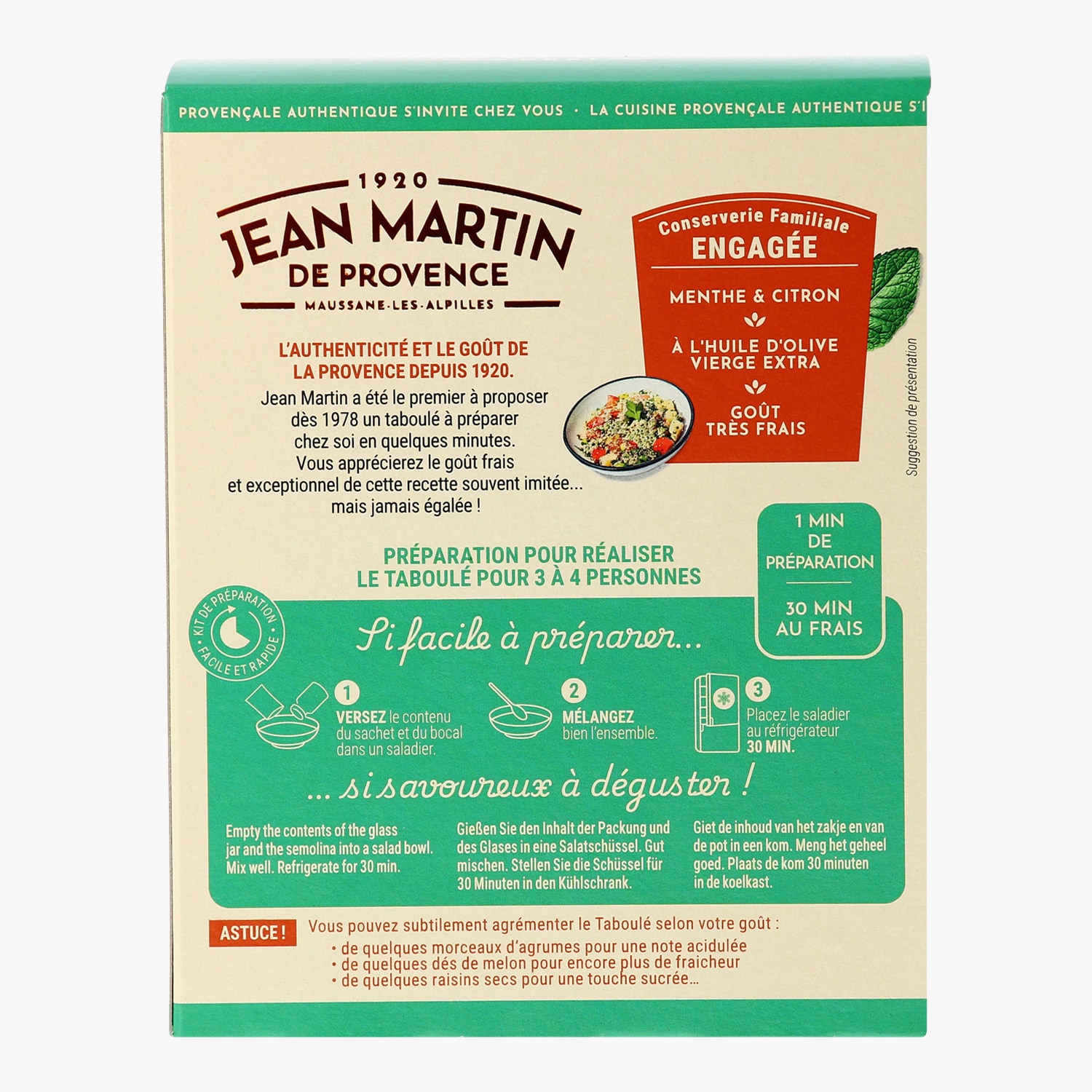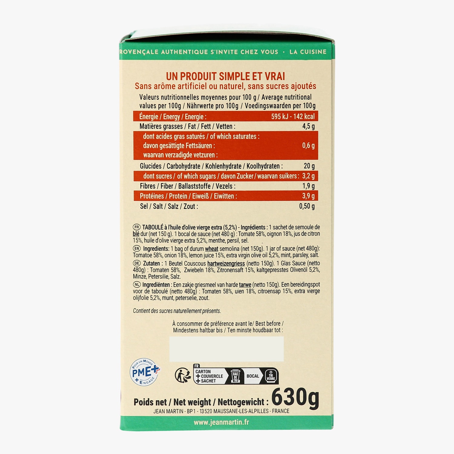 Taboulé à l’huile d’olive vierge extra (5,2 %)