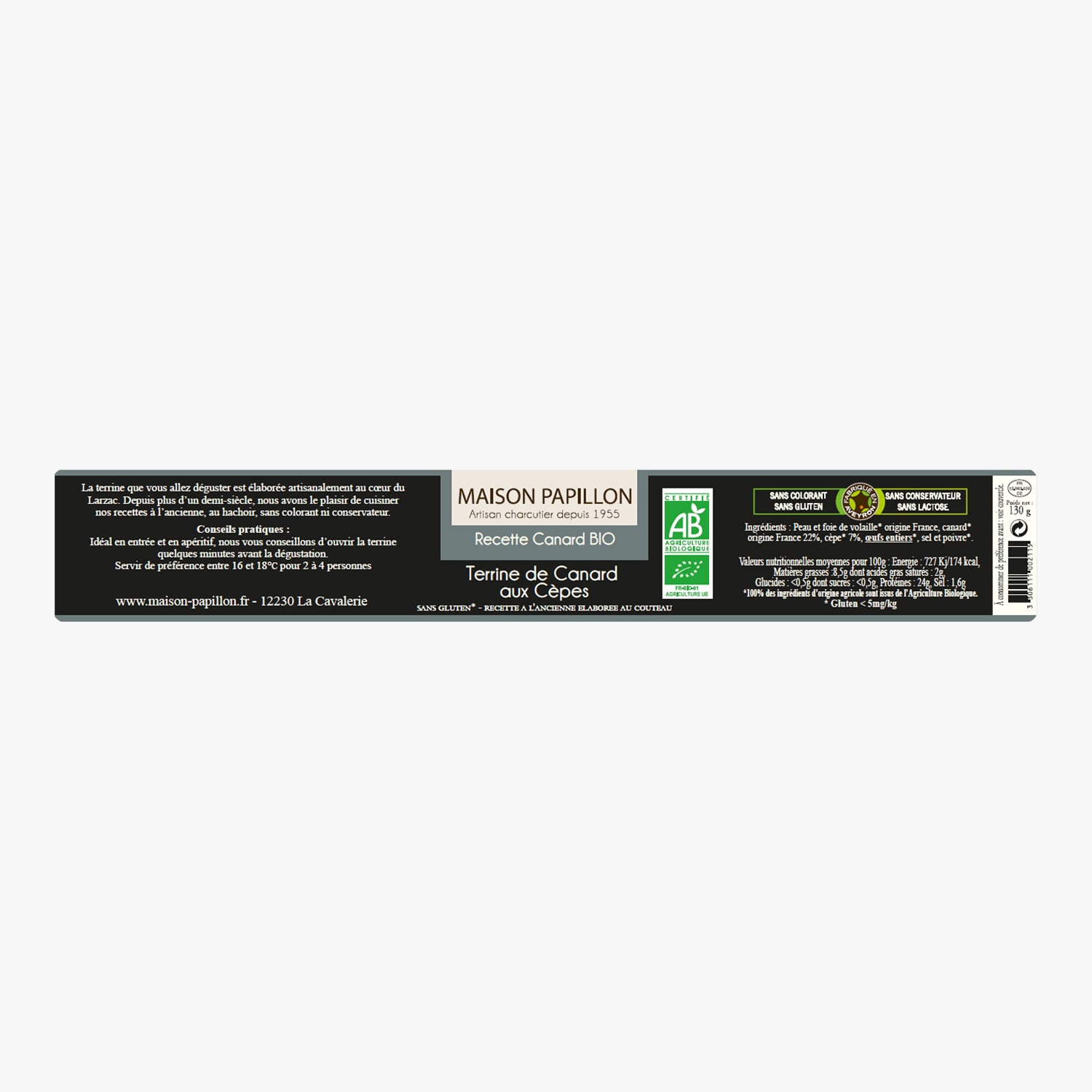 Terrine bio de canard aux cèpes Maison Papillon