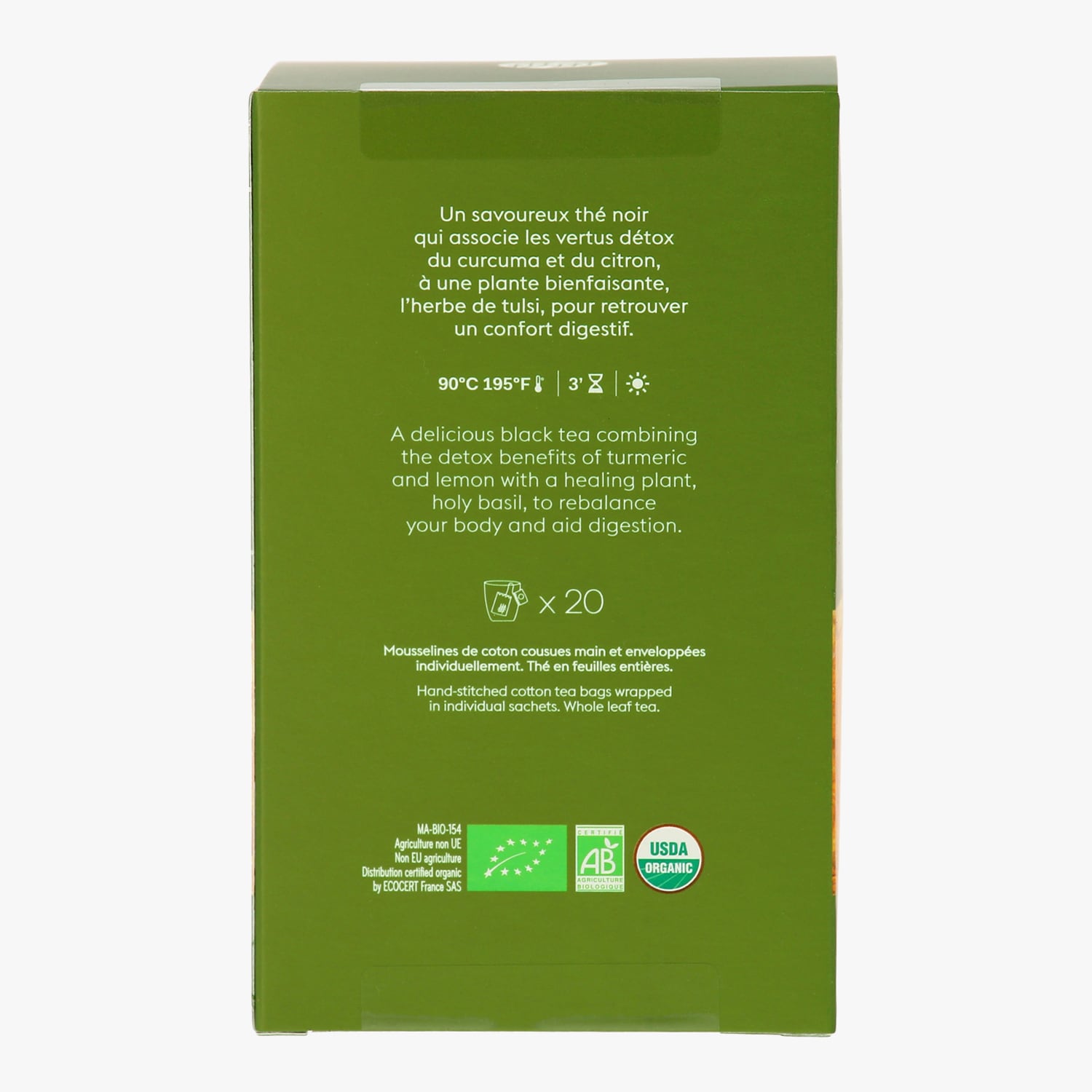 Thé parfumé : thé noir, curcuma, herbe de tulsi et citron - 20 sachets mousseline