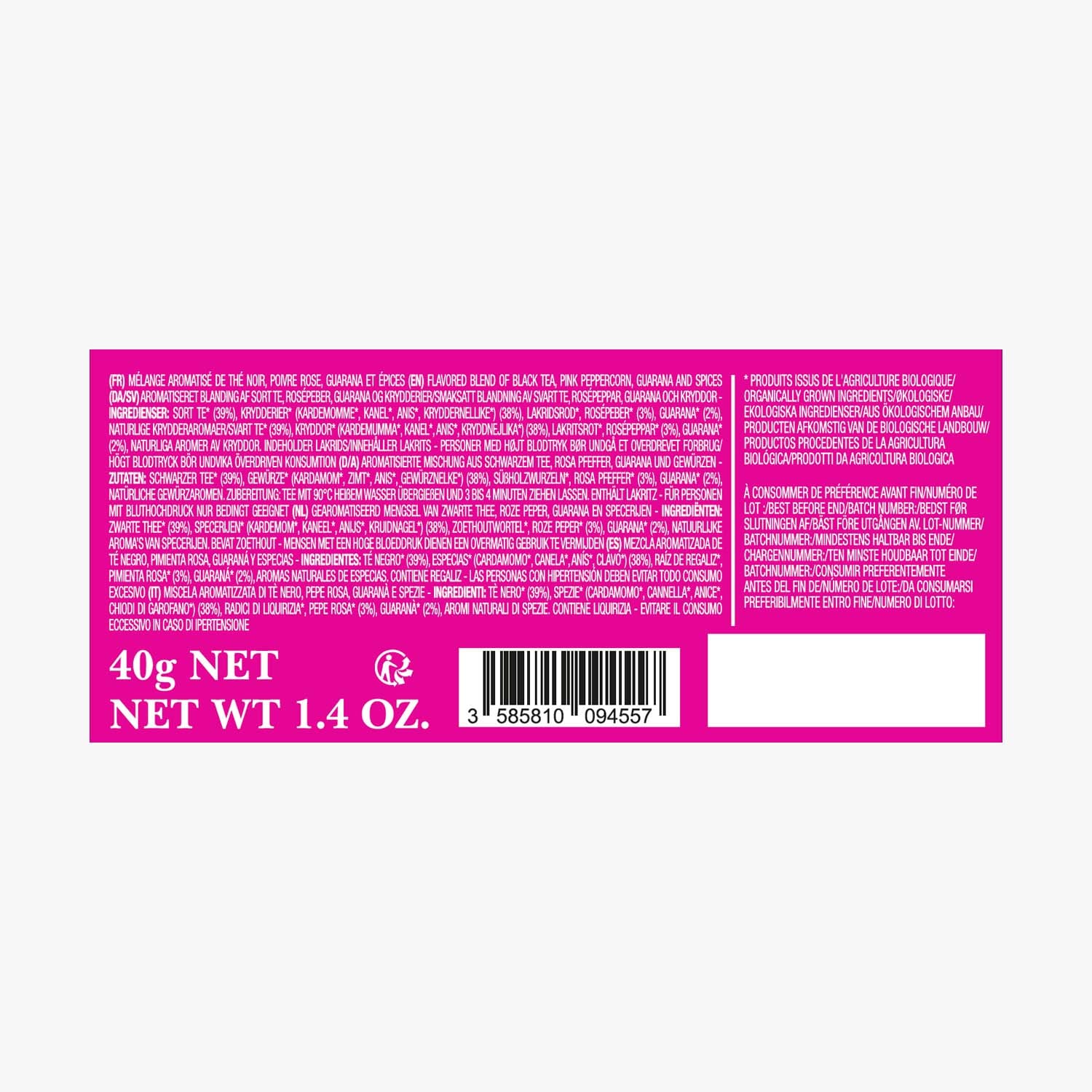 Mélange bio aromatisé de thé noir, poivre rose, guarana et épices