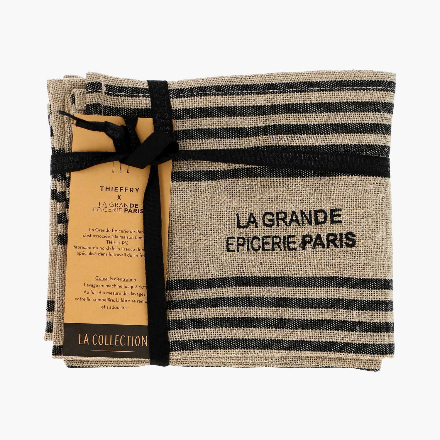 Torchon en lin brut rayé noir La Grande Épicerie de Paris