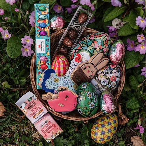 L'offrande de chocolats à Pâques est une tradition gourmande qui mêle coutumes religieuses et renaissance printanière. Les œufs symbolisent la vie et le renouveau du printemps, en offrir est alors une manière de célébrer ces symboles. À l'origine, durant le carême, les œufs étaient interdits à la consommation pendant 40 jours. Ils étaient alors stockés jusqu'à la fin de cette période de jeûne. Pour marquer la rupture du carême et célébrer le printemps, ils s'échangeaient ces œufs conservés et souvent décorés. Au XVIIIe siècle, des artisans alsaciens et allemands ont innové en vidant les œufs pour les garnir de chocolat. Puis, l'apparition des moules en métal au XIXe siècle ont permis aux chocolatiers de développer leur créativité, donnant naissance aux formes variées que nous connaissons aujourd'hui.