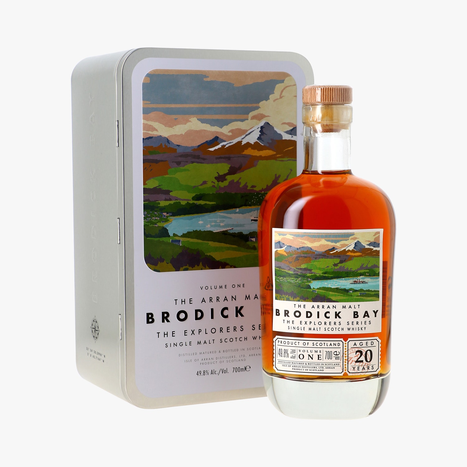 Whisky Arran, Brodick Bay, The Explorers Series, single malt, 20 ans, sous coffret en métal