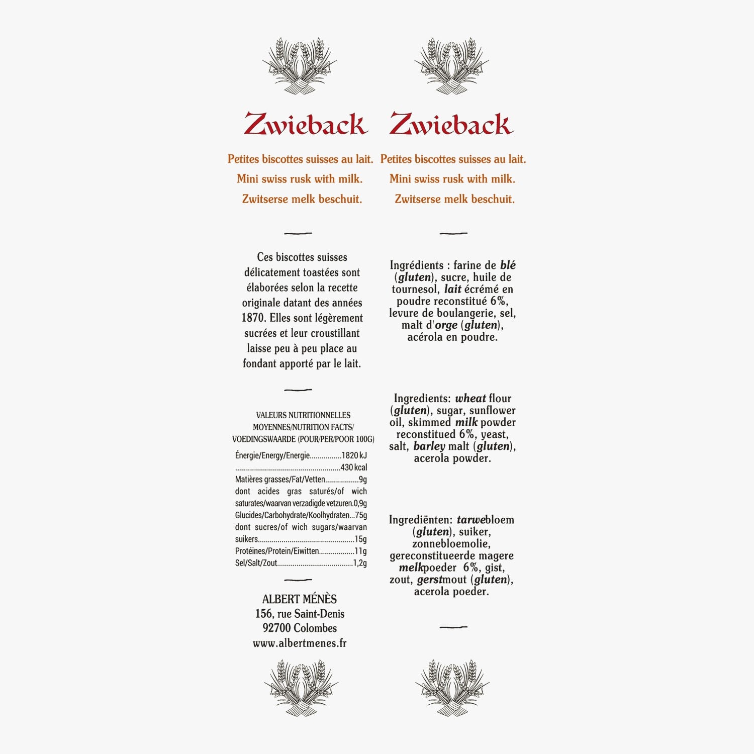 Zwieback petites biscottes suisses au lait Albert Ménès